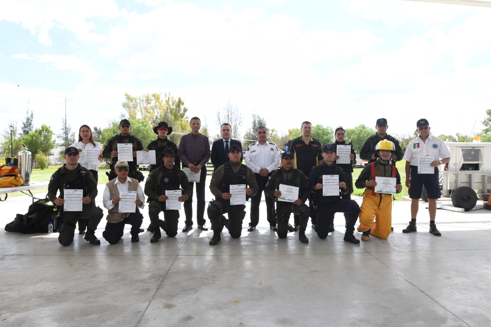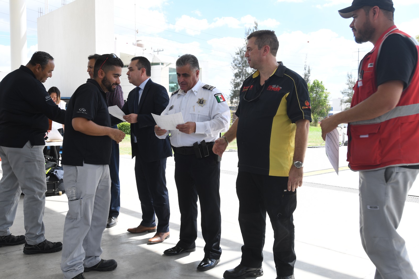 El titular de la SSPM, Antonio Martínez Romo, fue el encargado de otorgar la constancia ENTRENAMIENTO FIREADE 2000 y ENFORCER (DC3), al personal de la SSPM que acreditó el curso de “Uso de extintor de espuma”, el cual tuvo como sede el aeropuerto Bicentenario ubicado en Ciudad Industrial.