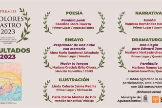 Cabe señalar que el Premio Dolores Castro 2023, será entregado en el marco del 448 Aniversario de la Fundación de la Ciudad de Aguascalientes en octubre del presente año y consiste en 35 mil pesos para las ganadoras y la publicación de la obra; para las menciones honoríficas, el reconocimiento y la publicación de la obra.