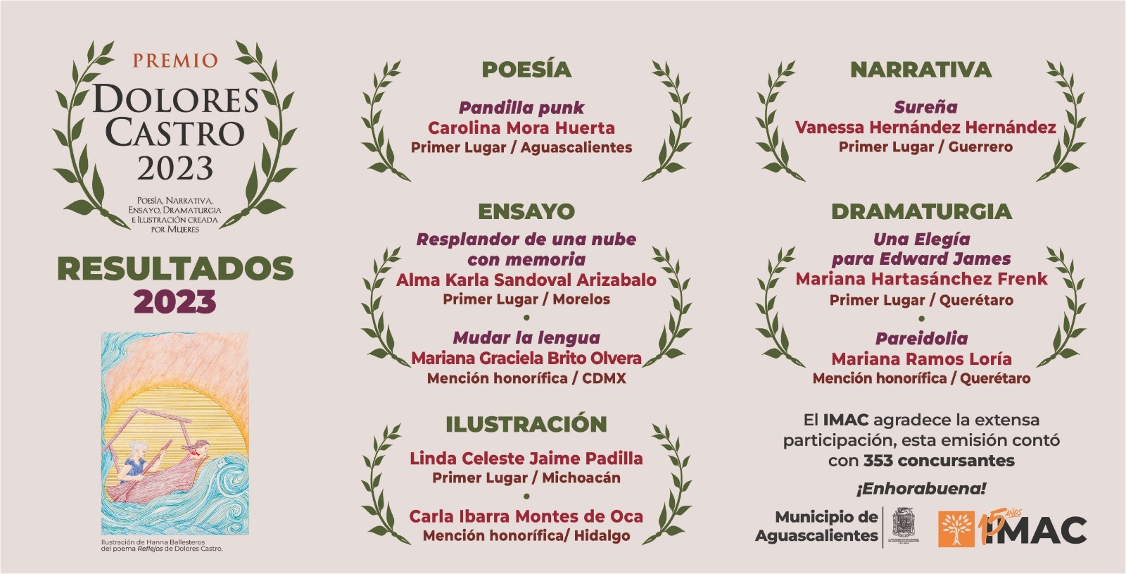 La celebración de esta convocatoria es también significativa porque en el género de Poesía, la ganadora es de Aguascalientes.