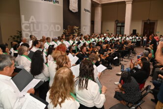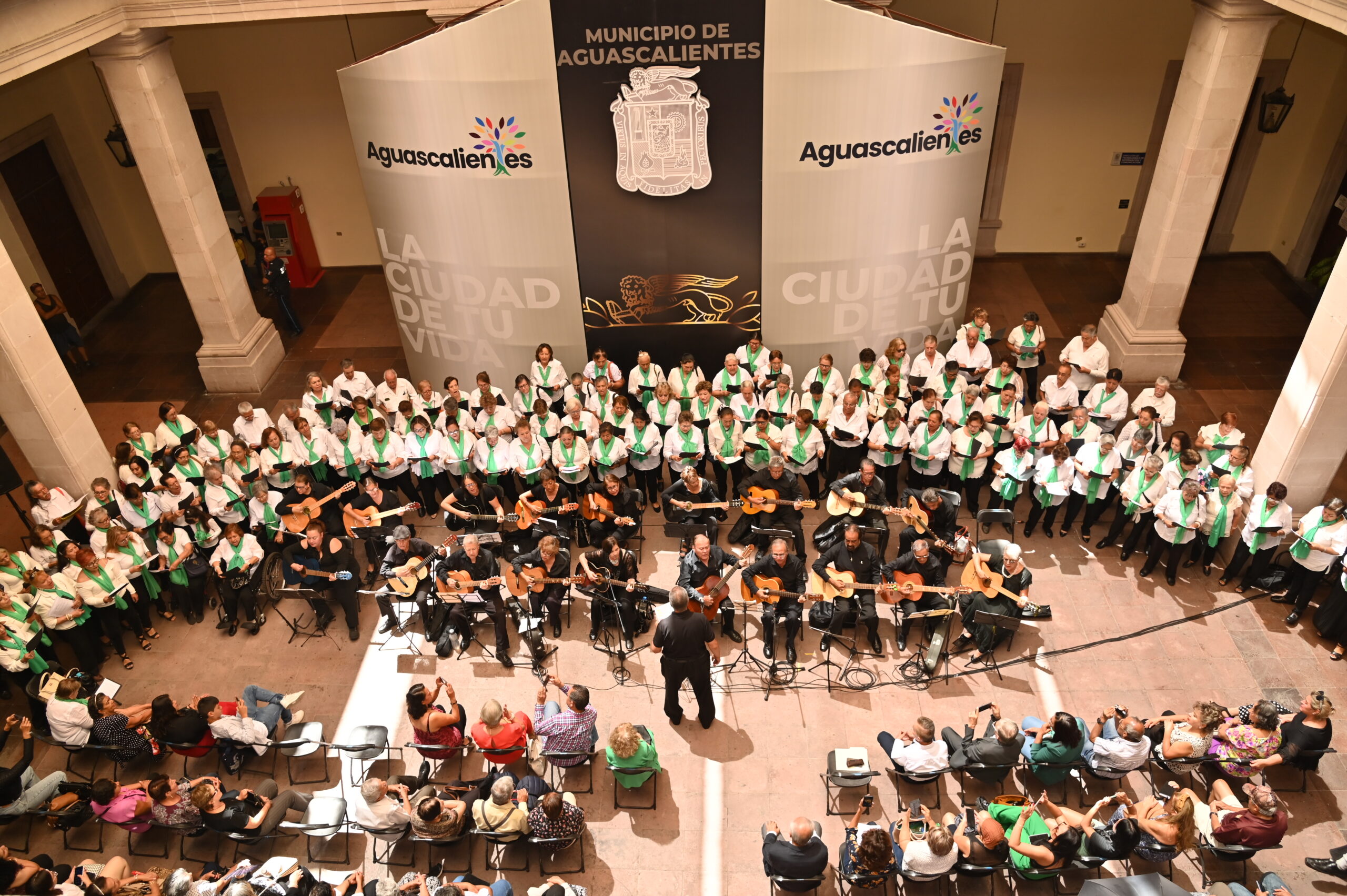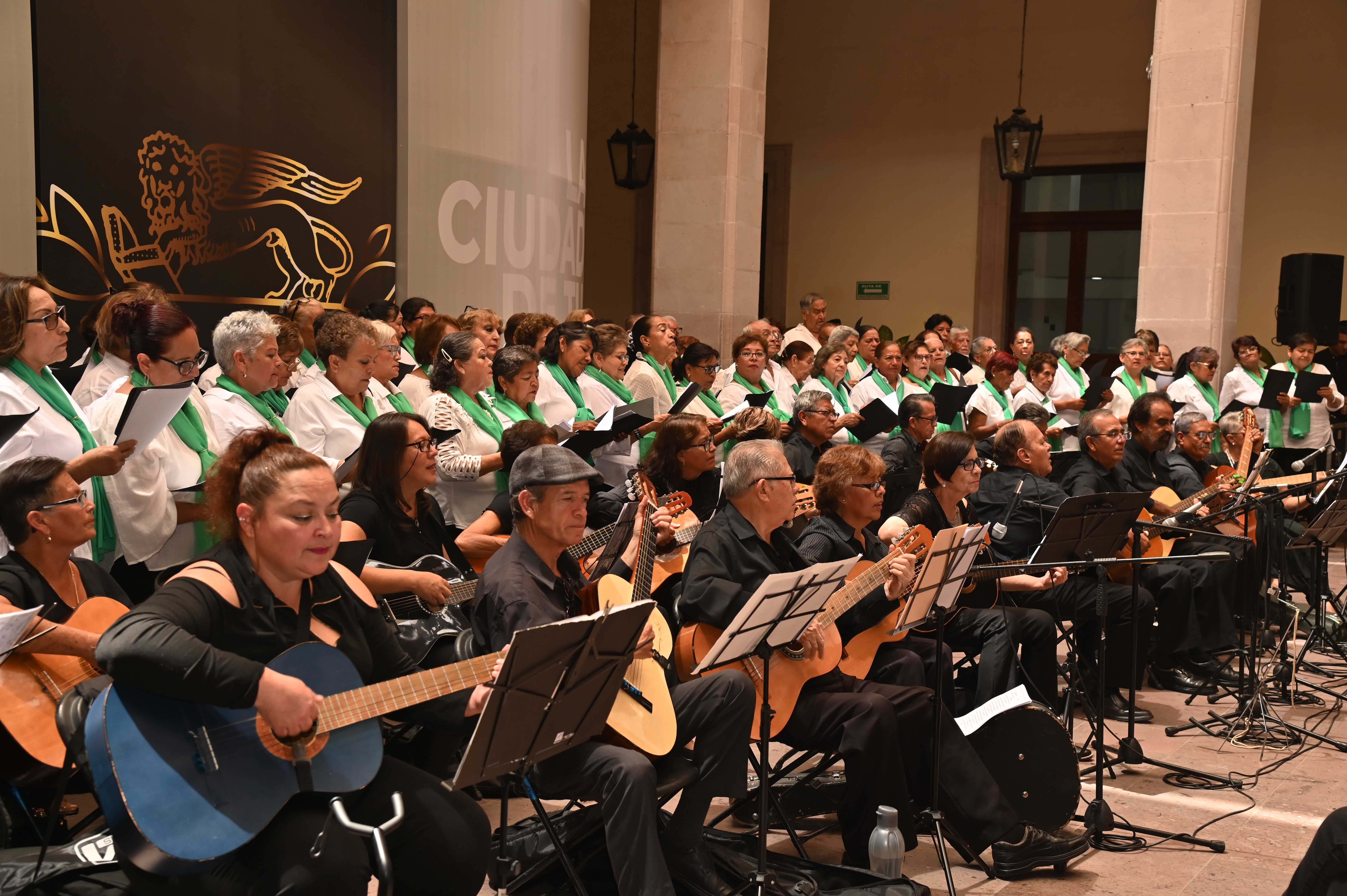 Lucio Ochoa informó que la rondalla “Voces y Guitarras del Ayer” está conformada por más de 100 abuelitas y abuelitos de los dos Centros de Integración de Adulto Mayor y de diferentes clubes de adultos mayores del DIF Municipal. Resaltó que la mayoría empezaron desde cero, pero gracias a la constancia deleitaron a los presentes con canciones como “Payasito”, “O sole mío” “Perfume de gardenias”, “De colores”, “Ella” y “No tengo dinero” entre otras.