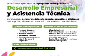 Para obtener más información e inscribirse, los interesados pueden comunicarse al teléfono 449-910-10-30 en un horario de 8:00 a 15:30 horas, o bien, acudir a las instalaciones de la SETUM ubicada en Antonio Acevedo #103-A, zona Centro, para que de esta forma no pierdan la oportunidad de participar en este programa gratuito y mejorar el desarrollo económico de sus empresas.