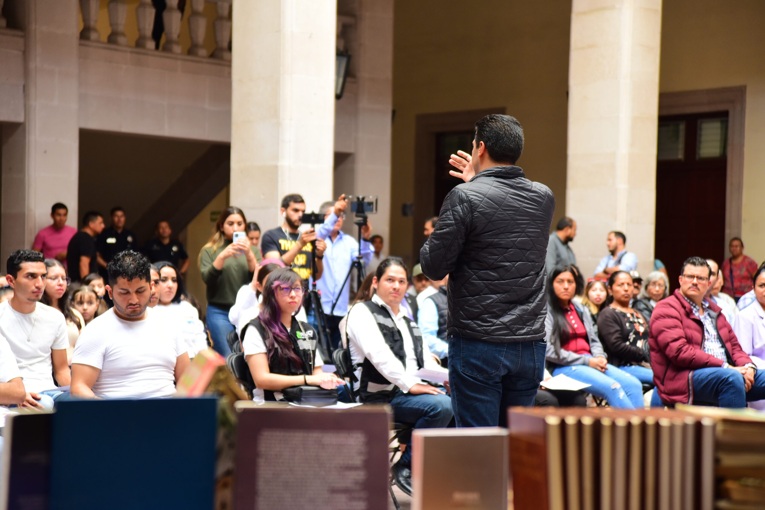 Se contó con la presencia del regidor, Juan Guillermo Alaniz de León; el diputado Raúl Silva Perezchica; el director del INEPJA, Alejandro Monreal; la rectora de la Universidad Británica, Xóchitl Zúñiga Medel y Emmanuel de Jesús Tiscareño Ruiz, estudiante de dicha universidad.