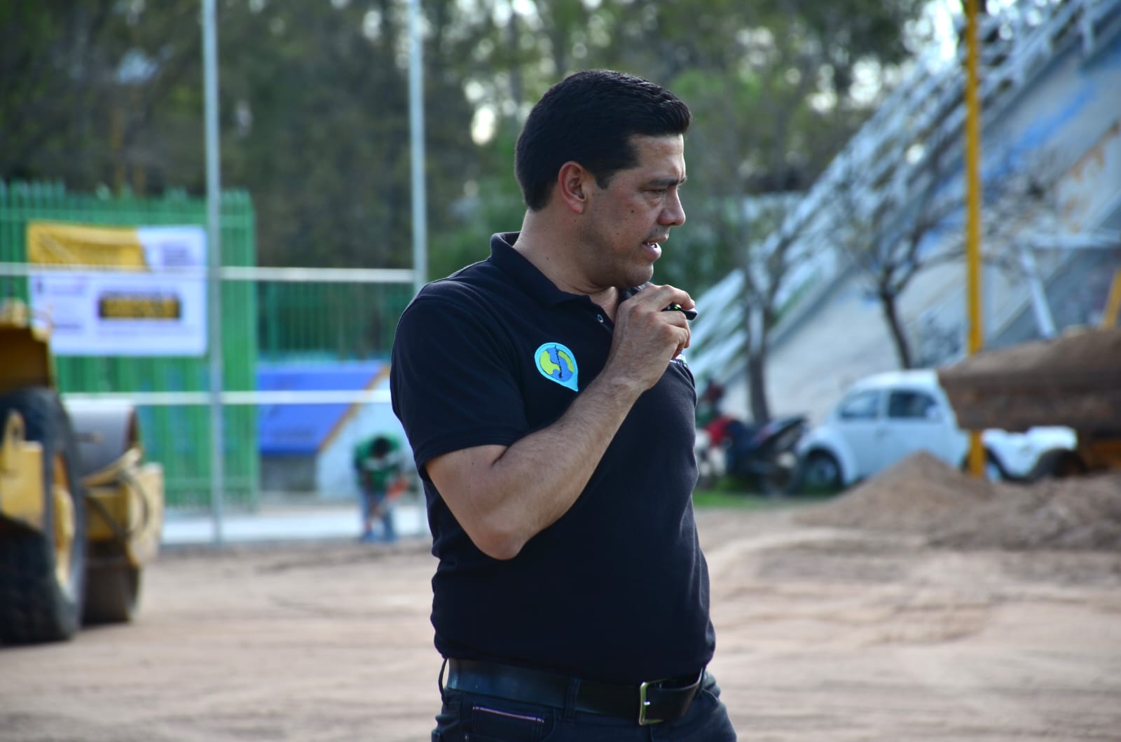 Este martes, el presidente municipal Leo Montañez, asistió a la revisión de la obra y rehabilitación del Parque Azul ubicado en la colonia Insurgentes, donde la Secretaría de Obras Públicas Municipales (SOPMA) trabaja en la construcción de una cancha pública de fútbol soccer.
