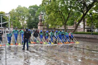 Indicó también que el viernes 15 se colocarán 20 tambos para depósito de basura y se reforzarán las rutas principales de barrido manual, papeleo y vaciado de cestos papeleros con la participación de una cuadrilla que se distribuirá estratégicamente en la Plaza de la Patria y andadores contiguos.