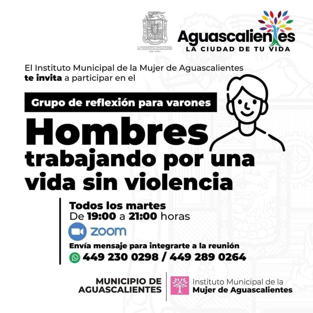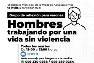 Ana Paola Gutiérrez, recalcó que el servicio se brinda de manera gratuita y confidencial a los hombres que participan. Puso a disposición las líneas de Whatsapp 449 230 02 98 y 449 289 02 84 para integrarse a la reunión por Zoom.