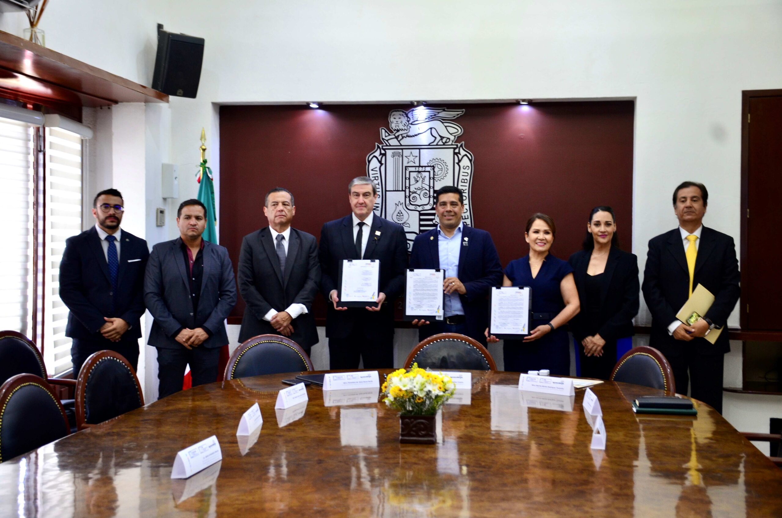 En la reunión efectuada en el salón Presidentes de Palacio Municipal, participaron además en la firma de este acuerdo de colaboración Sergio Arturo Lozano González, secretario de Finanzas Municipales; Oscar Rodríguez Godoy, secretario de Desarrollo Urbano Municipal; Jaime Armendáriz Macías, jefe de Departamento de Instrumentación Jurídica y Estudios Legislativos de la Secretaria de Finanzas; María Elena Leal González, directora general del Instituto Catastral; así como Juan José Gómez Diosdado, director general Jurídico del Instituto Registral y Catastral del Estado.