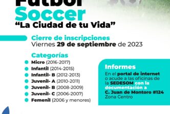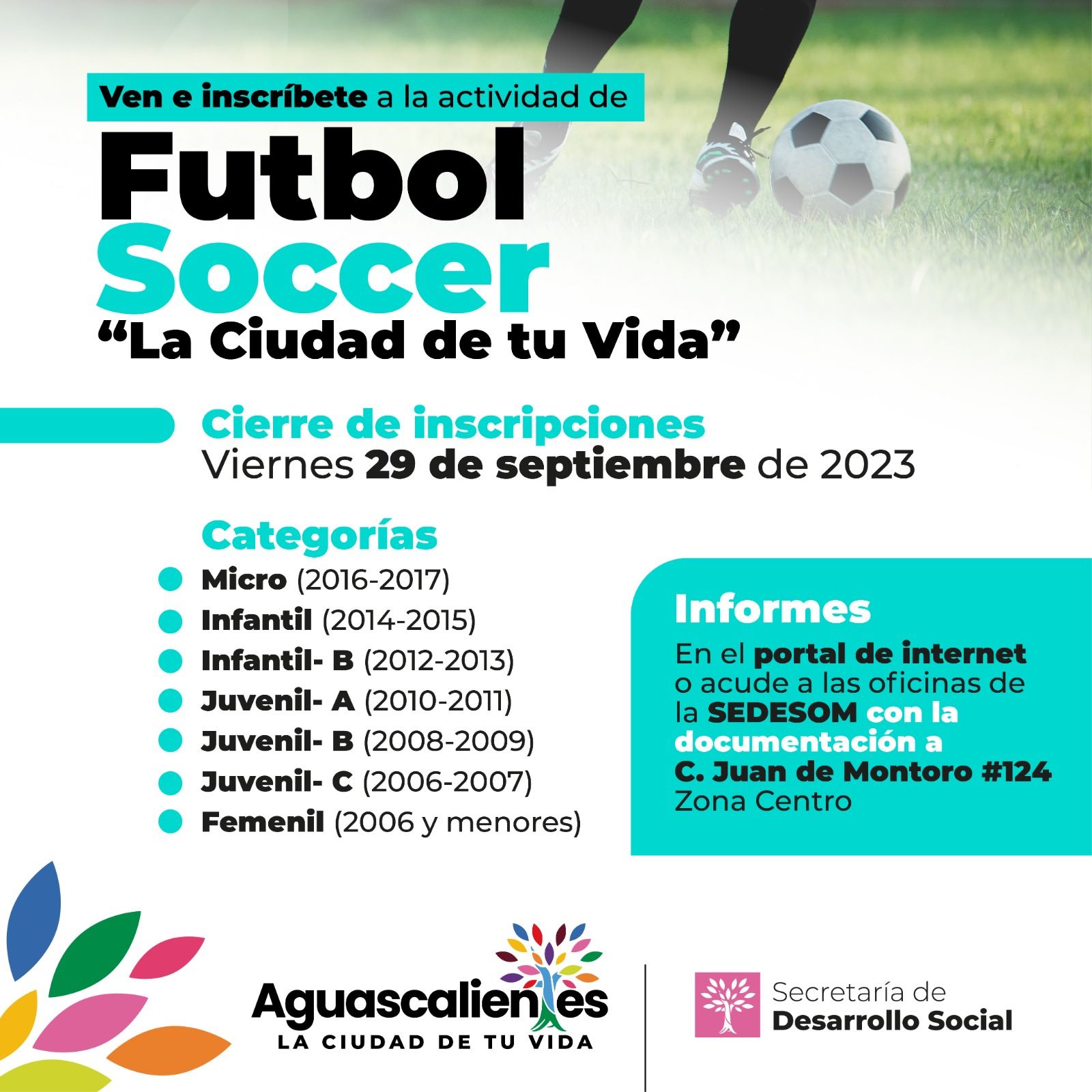 El Municipio de Aguascalientes convoca a los jóvenes a participar en la convocatoria “Futbol Soccer en la Ciudad de Tu Vida”, a través de la cual se fomenta la práctica deportiva y la convivencia.