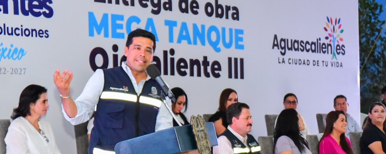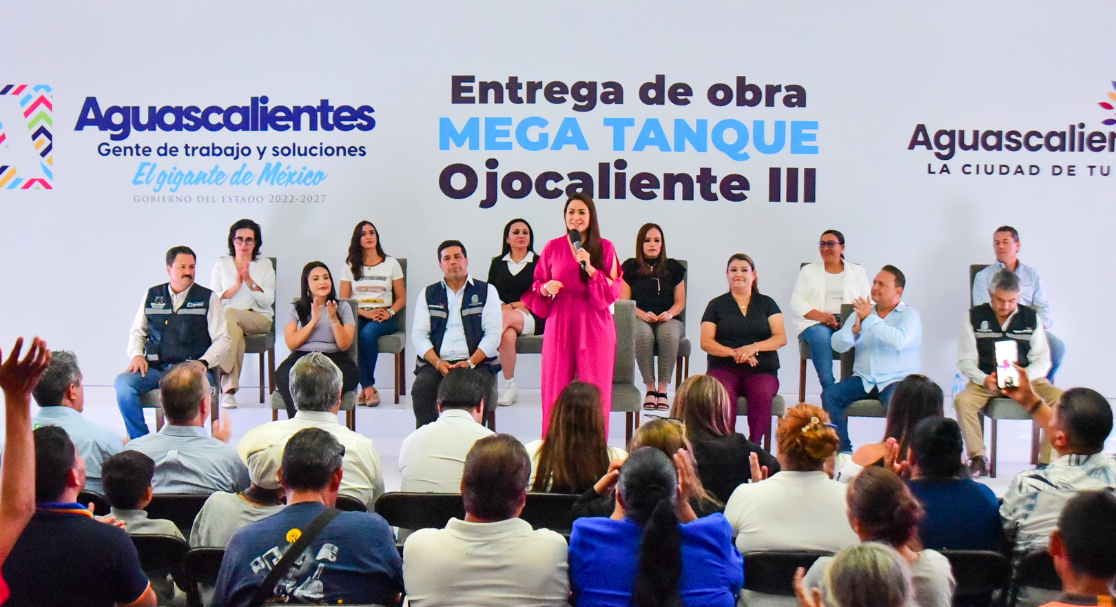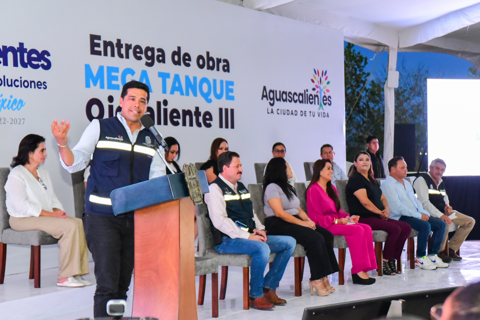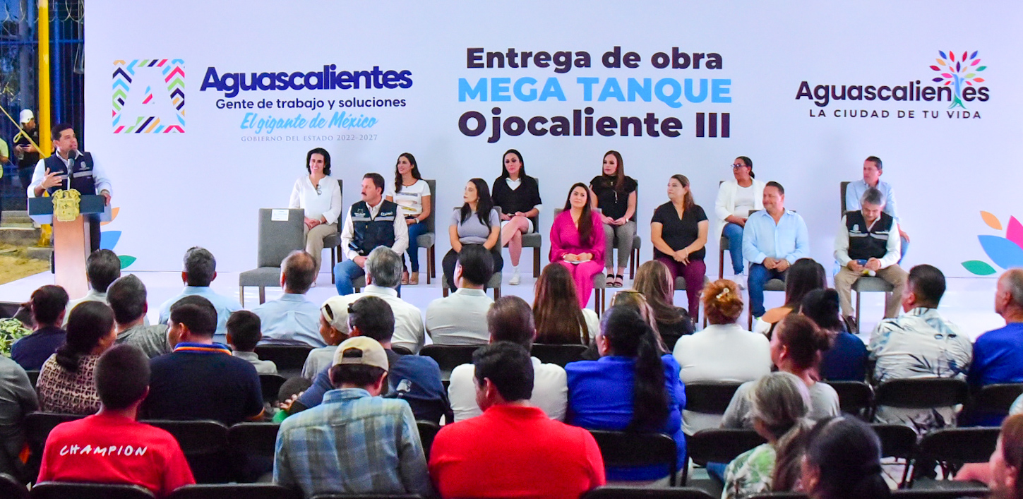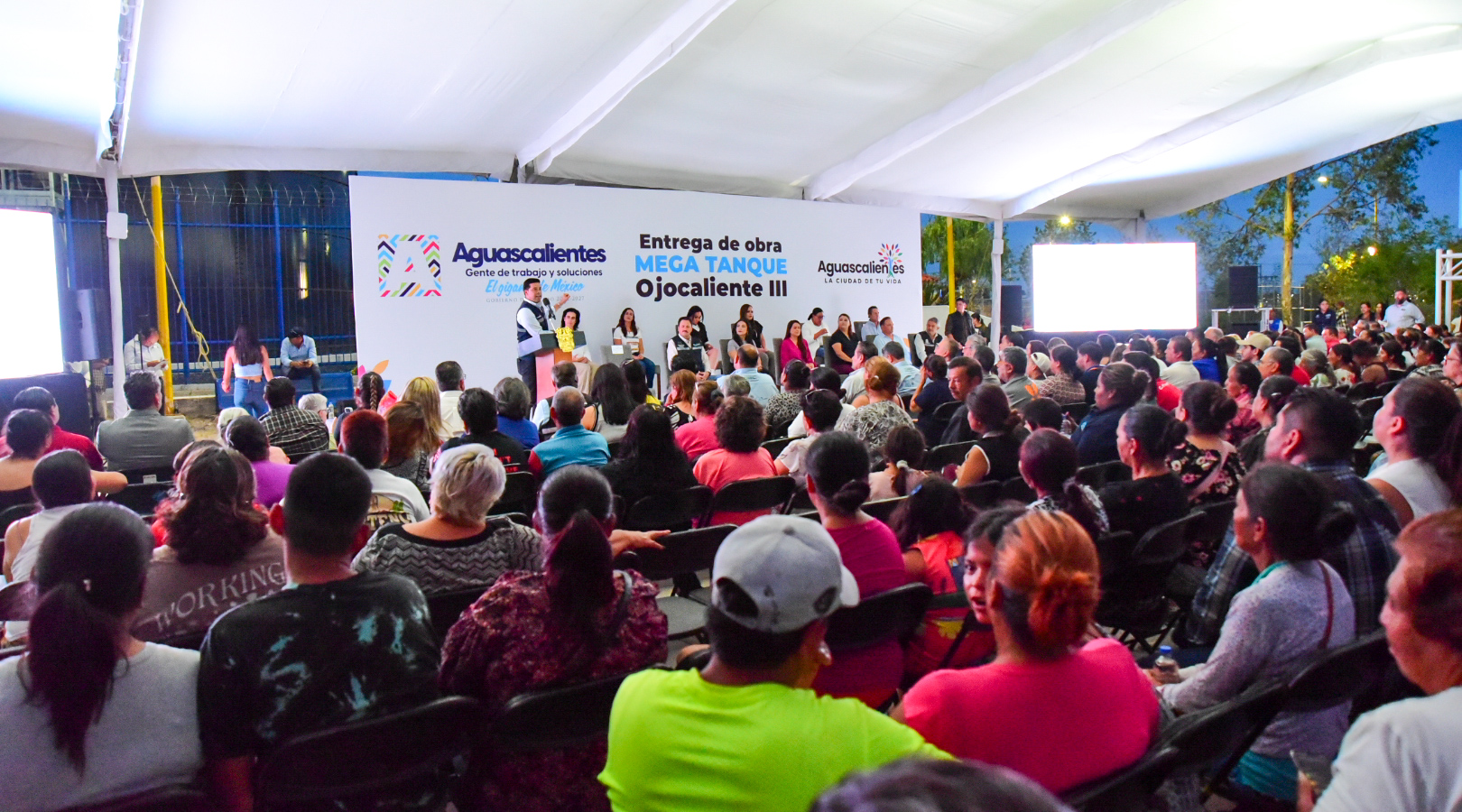 Como resultado de la suma de esfuerzos entre la gobernadora de Aguascalientes, Tere Jiménez, y el presidente municipal de la capital, Leo Montañez, para brindar soluciones a la ciudadanía en materia hidráulica, hoy entregaron un mega tanque de agua en el Ojocaliente III, que beneficiará a 205 mil personas.