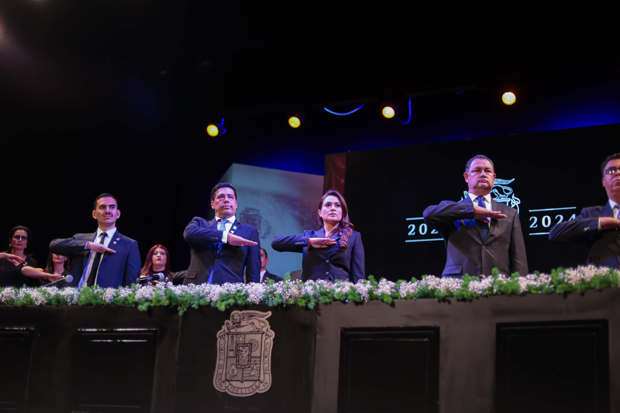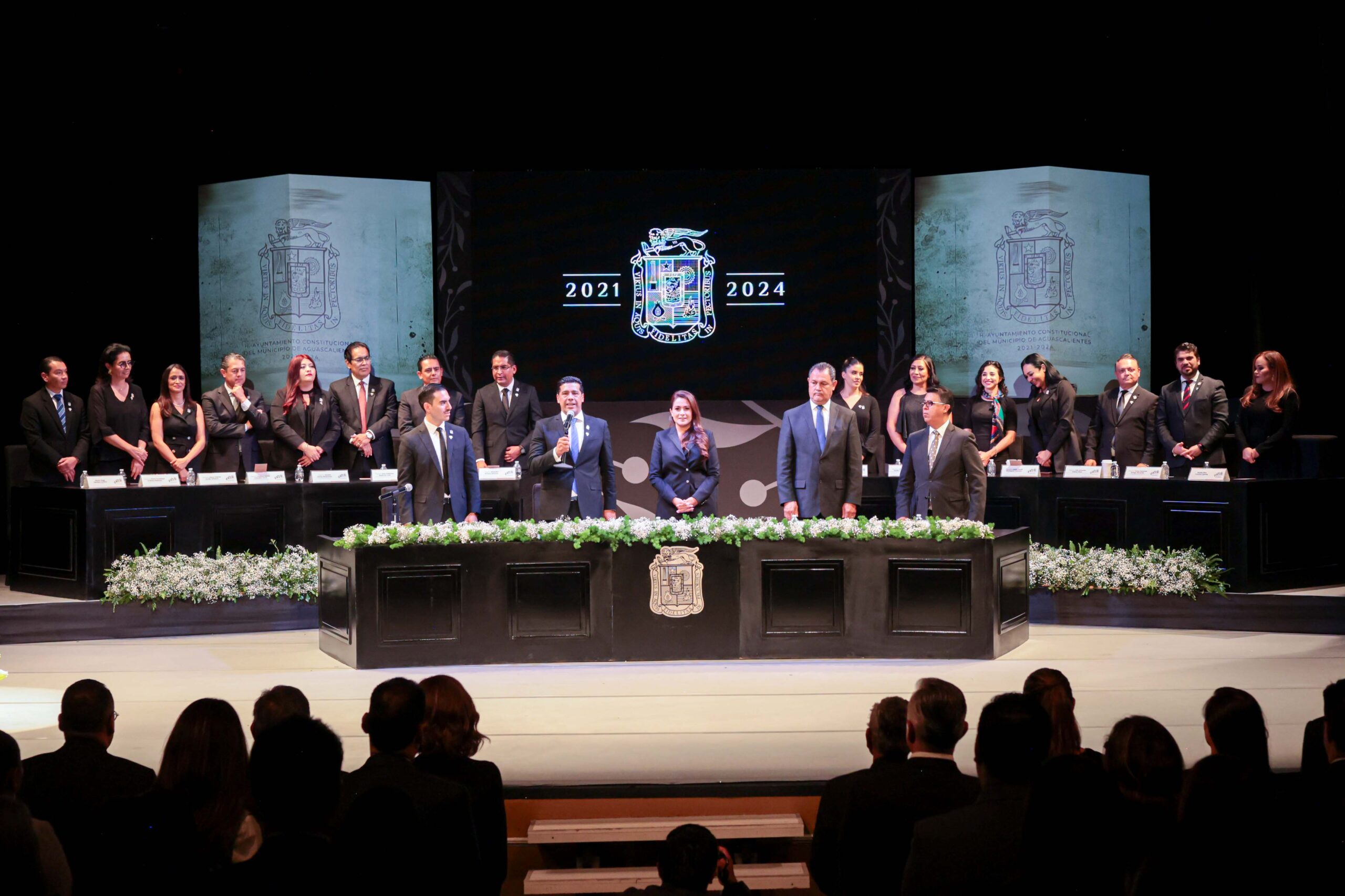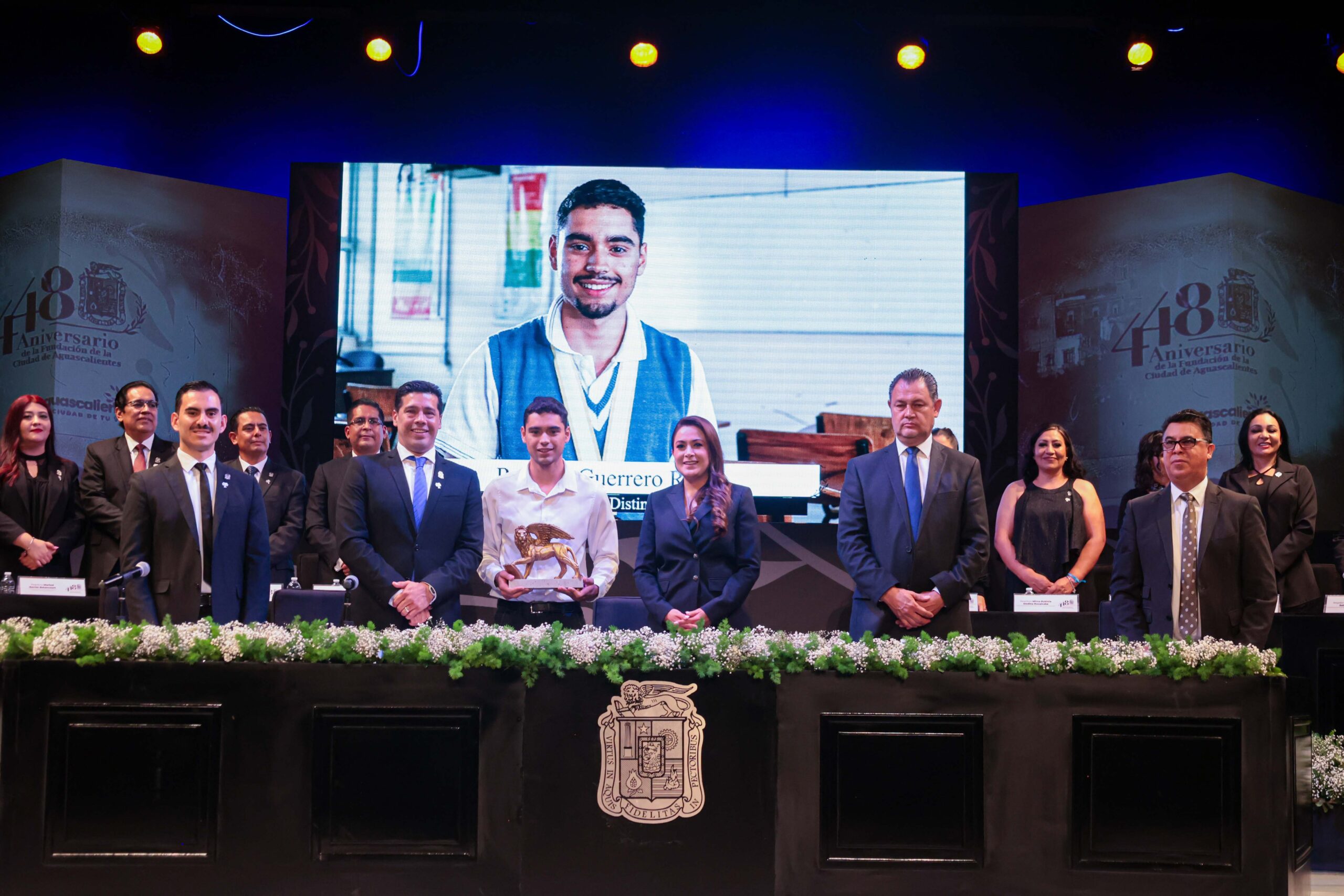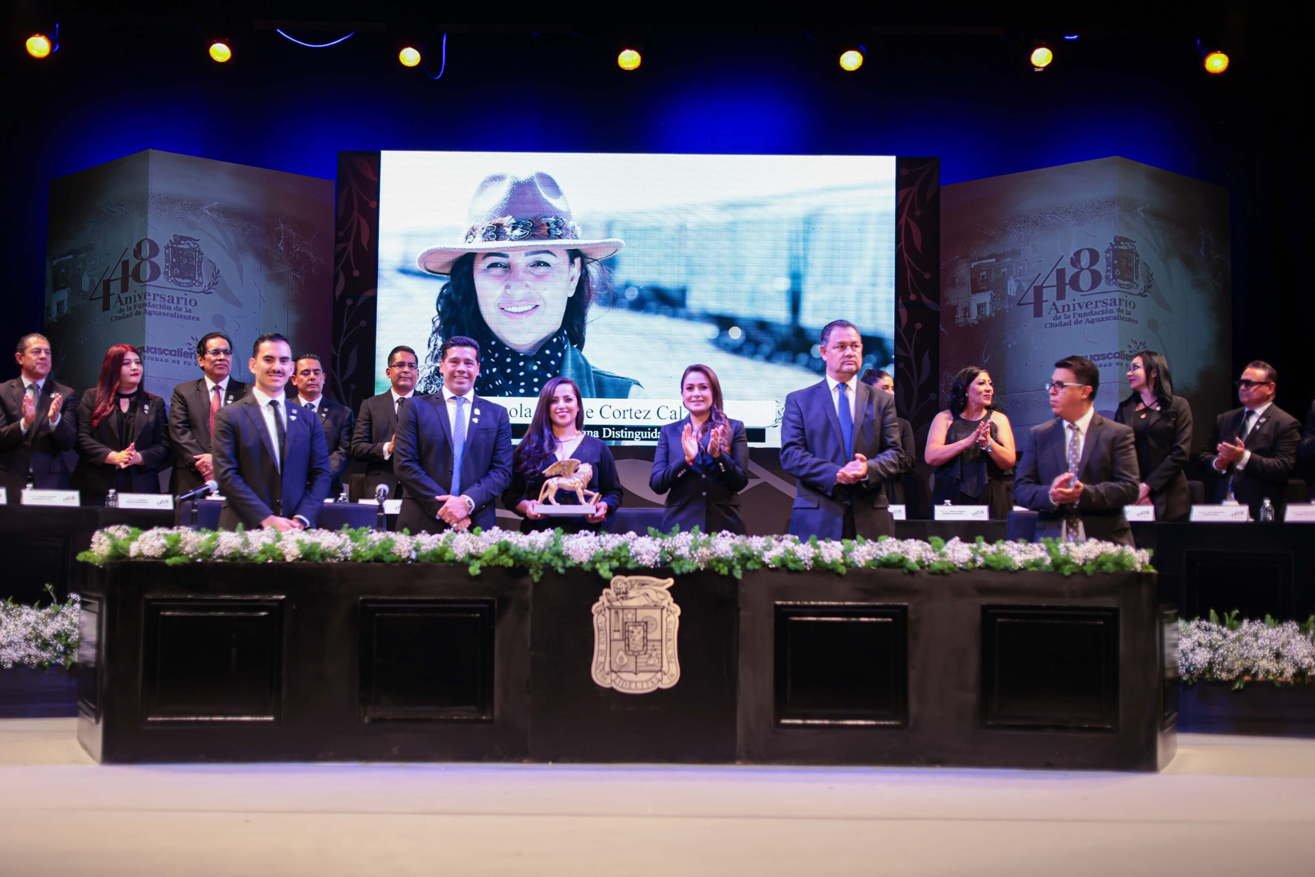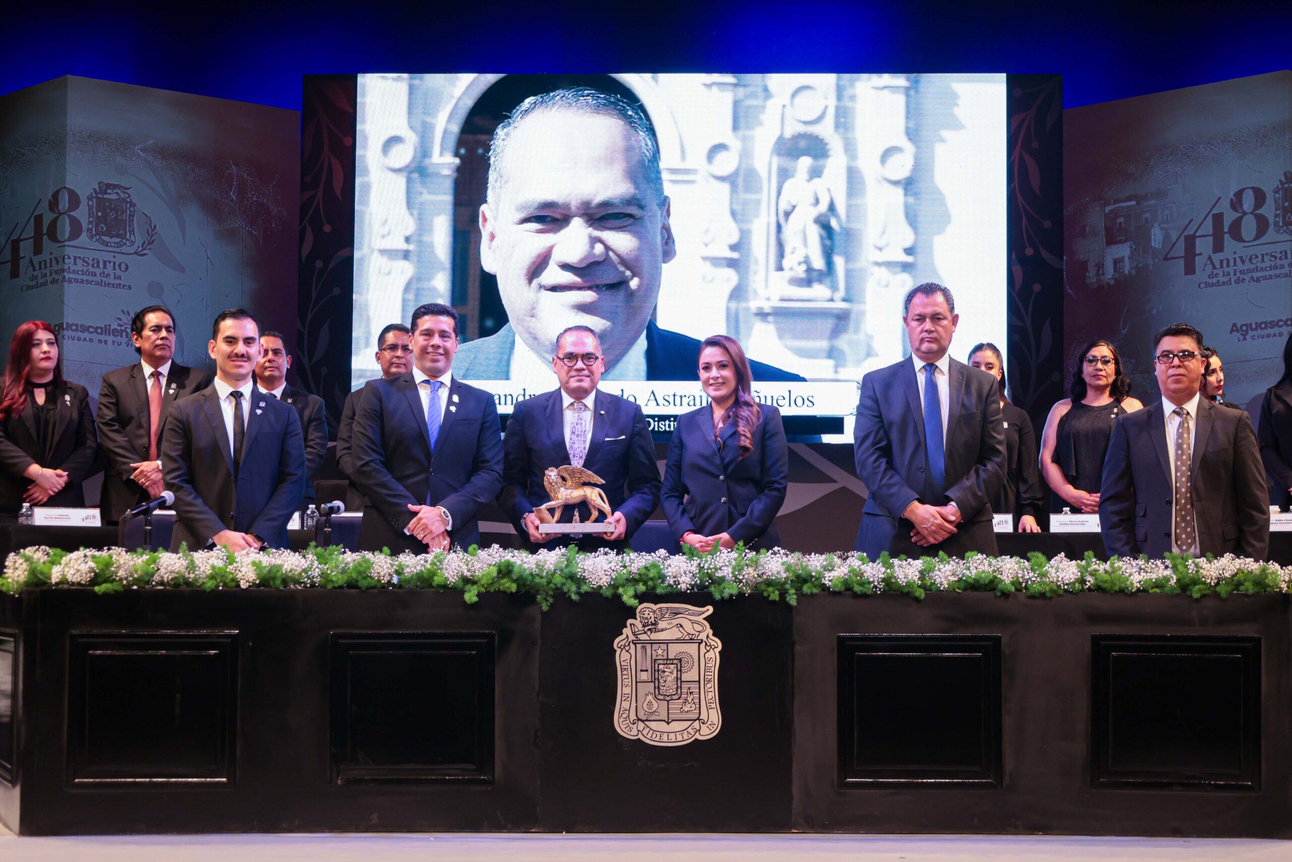 El Municipio de Aguascalientes celebró este domingo el Aniversario 448 de su fundación durante una Sesión Solemne que encabezó el presidente municipal, Leo Montañez, en el histórico Teatro Morelos.