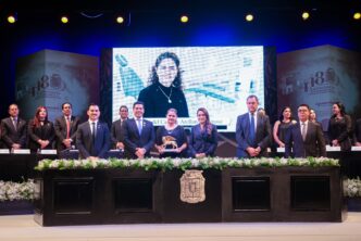 Nadine Cortés Calzada. Por su trayectoria en favor de los migrantes de Aguascalientes, su compromiso con el respeto a los Derechos Humanos, su trabajo para consolidar la política migratoria del país y la concientización sobre el trato digno a las personas migrantes. Se le otorga el galardón como Ciudadana Distinguida