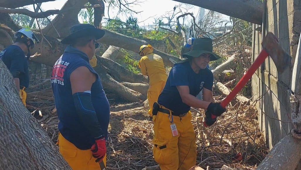 Brigadistas de Aguascalientes continúan con las labores de ayuda humanitaria en la zona devastada por el huracán Otis, en la ciudad de Acapulco de Juárez, en el estado de Guerrero.