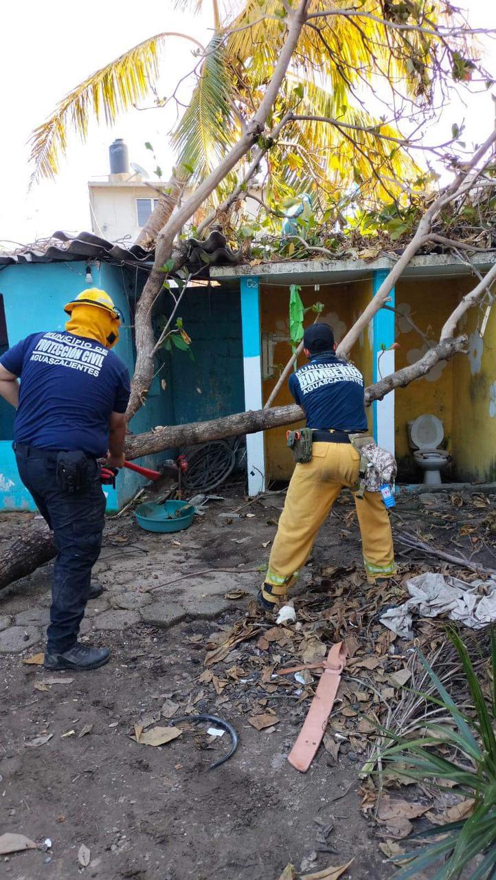 De acuerdo con los primeros resultados y durante las primeras horas de trabajo, el personal de Aguascalientes logró liberar 20 viviendas del 80 por ciento de los riesgos físicos que presentaba, principalmente de árboles que cayeron sobre los techos y bardas.