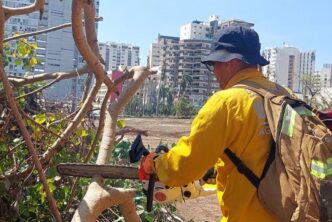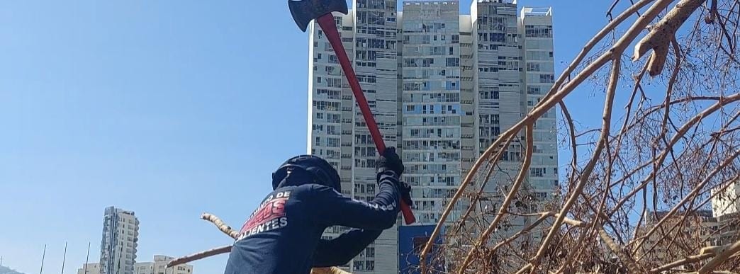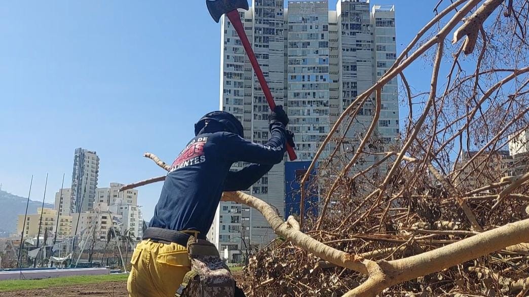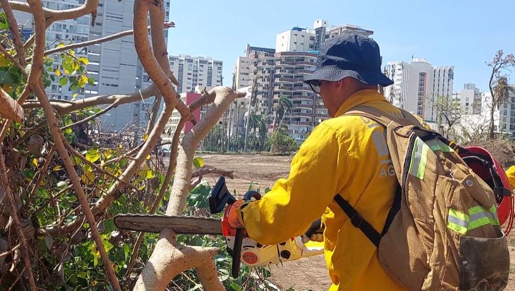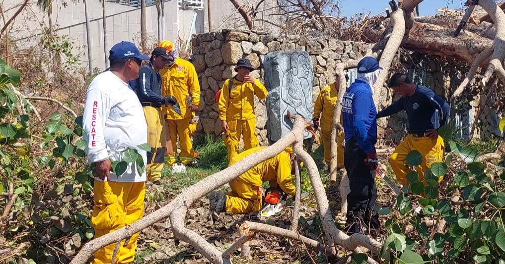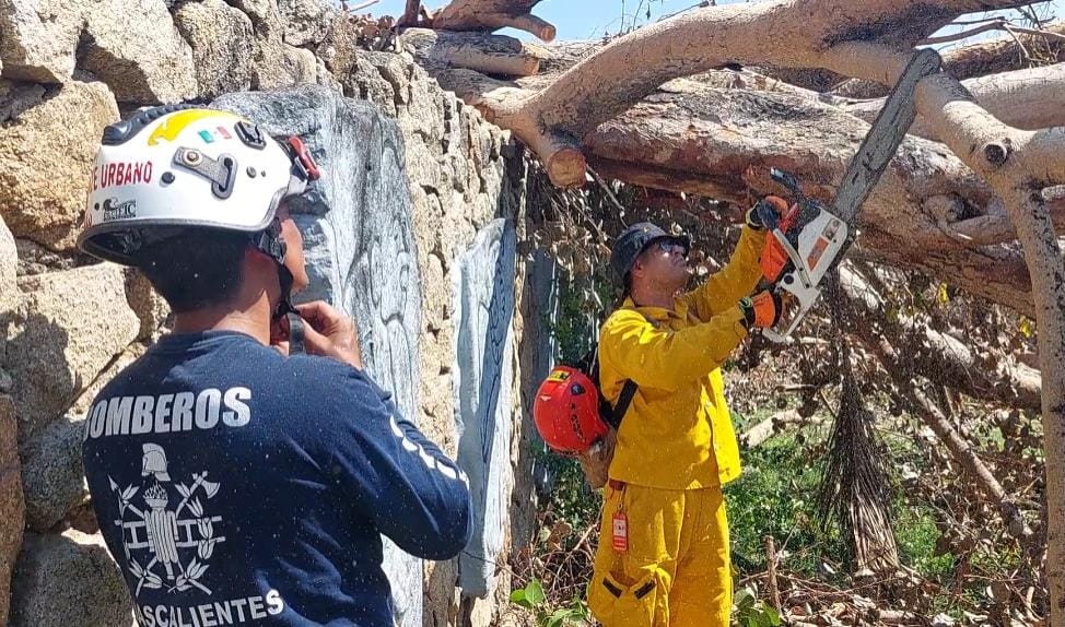 El titular de la Secretaría de Turismo de Guerrero, Santos Ramírez Cuevas, por conducto de la Secretaría de Gestión de Riesgos y Protección Civil, pidió el apoyo de brigadistas de Protección Civil Municipal Aguascalientes para eliminar riesgos en una extensión aproximada de una hectárea en el centro internacional de Acapulco, donde el huracán Otis derribó 50 árboles.