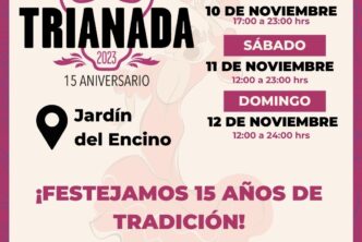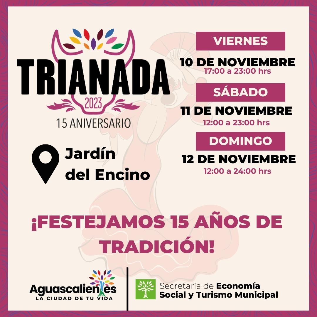 El Municipio de Aguascalientes presentó el programa para la celebración del XV Aniversario de la tradicional Trianada, que se llevará a cabo en el Jardín del Encino del 10 al 12 de noviembre de 2023.