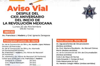 El cierre de las calles, detalló, iniciará en punto de las 06:00 horas en Avenida I. Madero, entre 28 de Agosto y Zaragoza; y permanecerá así durante aproximadamente dos horas. Además, habrá cierre de vialidades en: