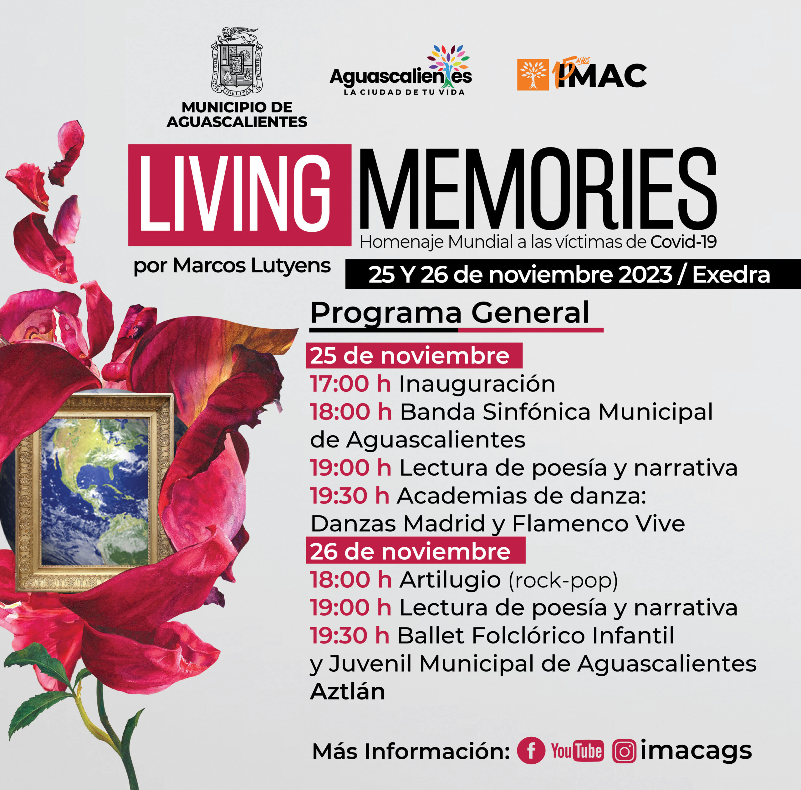 Con el objetivo de reconocer y homenajear a víctimas locales de COVID-19, el Municipio de Aguascalientes, a través del Instituto Municipal Aguascalentense para la Cultura (IMAC) y en colaboración con la Organización Mundial de la Salud (OMS), se llevará a cabo el innovador monumento titulado “Living Memories” o “Recuerdos Vivientes”.