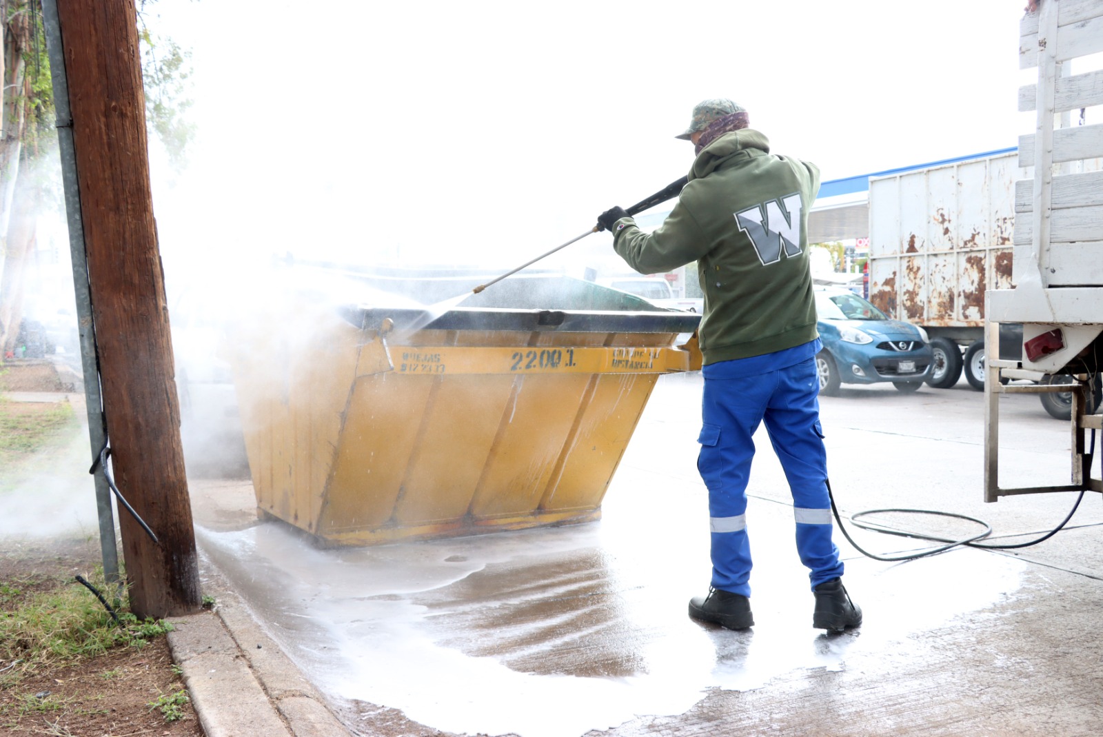 La Dirección de Limpia y Aseo Público del Municipio de Aguascalientes lleva a cabo operativos constantes de lavado de contenedores con el fin de evitar que expidan malos olores o haya fauna nociva derivada del depósito de desechos sólidos urbanos.