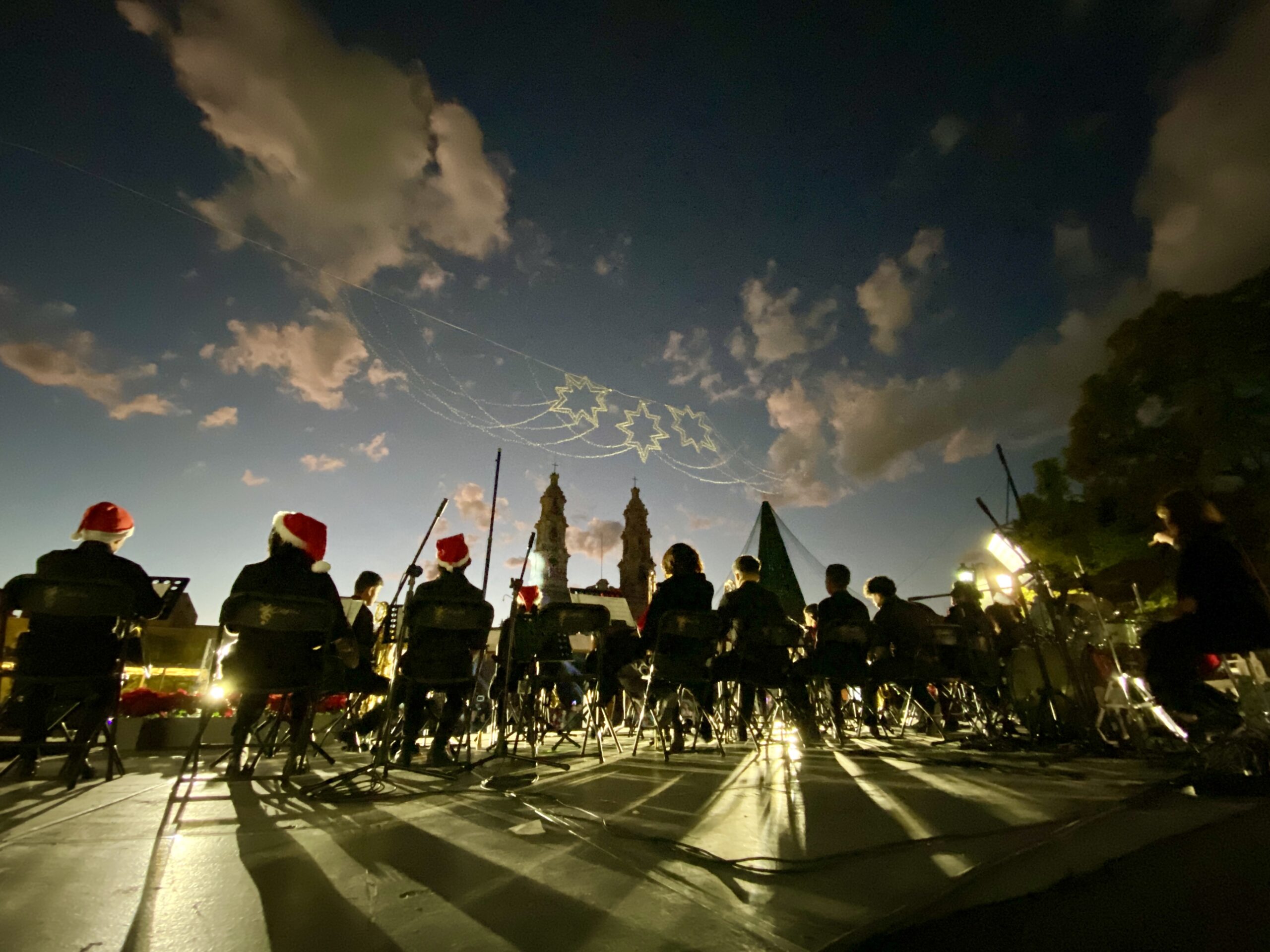 Con la participación de la Big Band Compáz del Municipio de Aguascalientes, se llevó a cabo el encendido del árbol y luces navideñas de la ciudad.