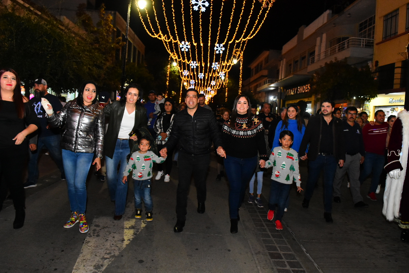 Integrantes del Cabildo y el gabinete municipal realizaron el encendido oficial en donde la ciudadanía disfrutó de un espectáculo de rayos láser y pirotecnia en un maravilloso escenario lleno de luz y alegría, con figuras volumétricas, los adornos en la calle Madero, alrededor de la plaza y la iluminación al interior y exterior de Palacio Municipal, que en esta ocasión iluminan hasta la calle Carranza.