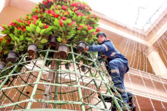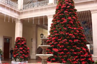 El titular de SSP, Carlos España Martínez, mencionó que además, en el Palacio Municipal, se instalaron 4 árboles y un mega pino navideño formados con más de mil 200 flores e iluminación ubicadas en el primer patio del edificio; cabe mencionar que más de mil 500 nochebuenas, son utilizadas en la mayoría de las áreas verdes del municipio y forman parte de la decoración navideña durante la temporada decembrina.