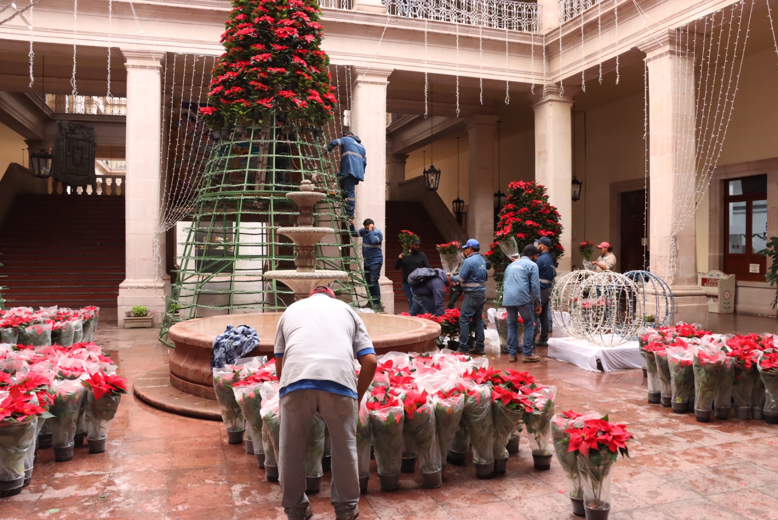 La Presidencia Municipal a través de la Secretaría de Servicios Públicos (SSP), colocó nochebuenas en calles del primer cuadro de la ciudad como Av. Madero, Zaragoza, Morelos, Jardín de los Palacios, Plaza Fundadores, jardines y triángulos del Centro de la ciudad, así como en las glorietas de La Purísima y El Quijote.
