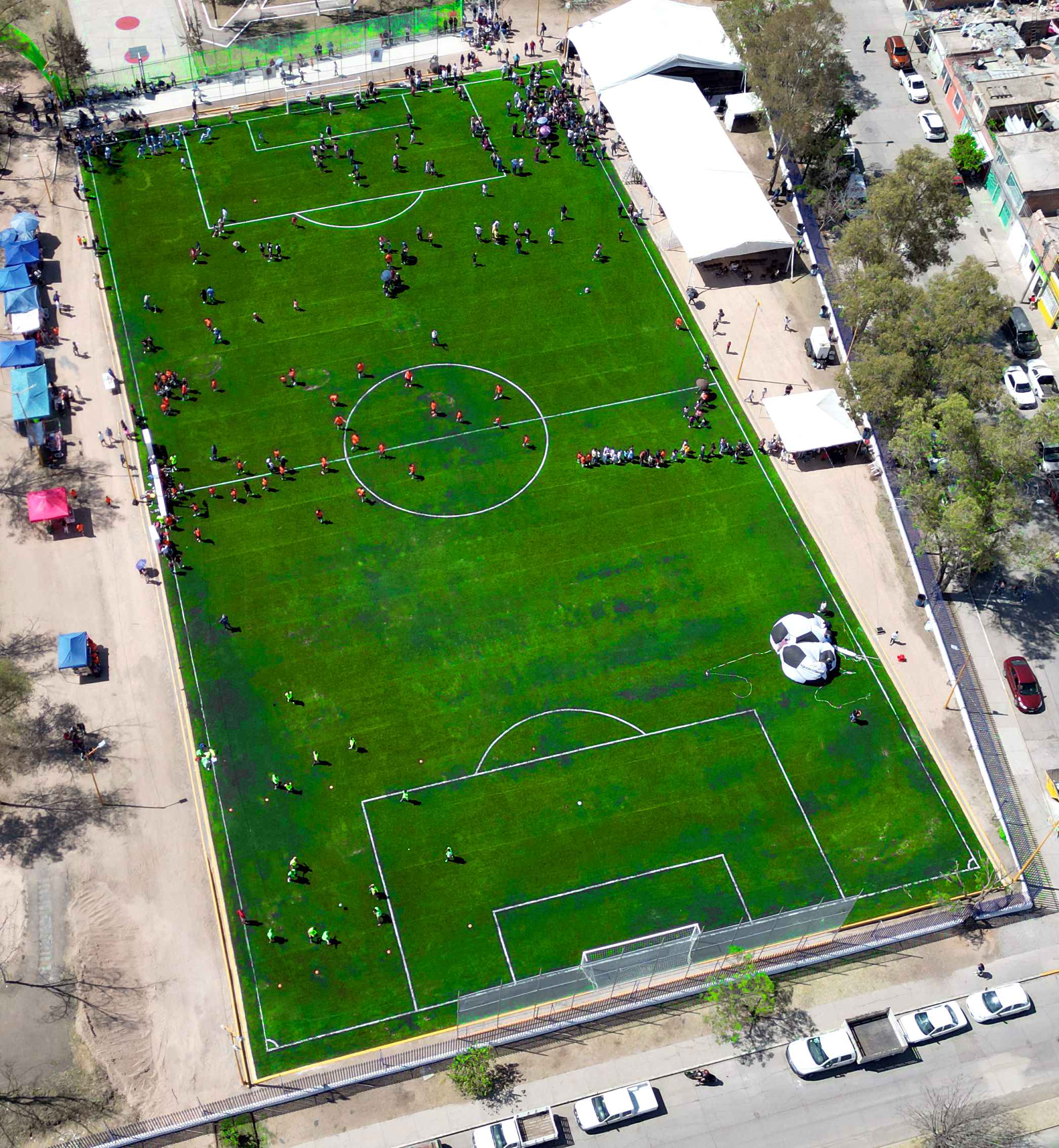 Además, se construyen nuevos parques en los fraccionamientos Australis, Valle de los Cactus, Laureles II y Mirador de las Culturas, en donde niños y adultos podrán disfrutar de espacios para el sano esparcimiento y deportivos con canchas de pasto sintético como la que se rehabilitó en el parque Azul de la colonia Insurgentes.