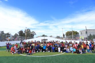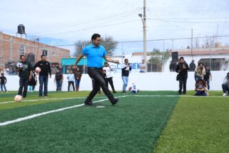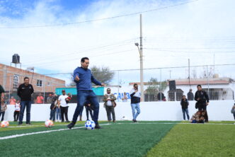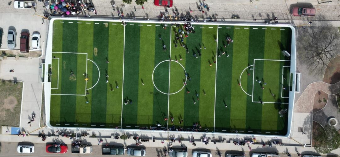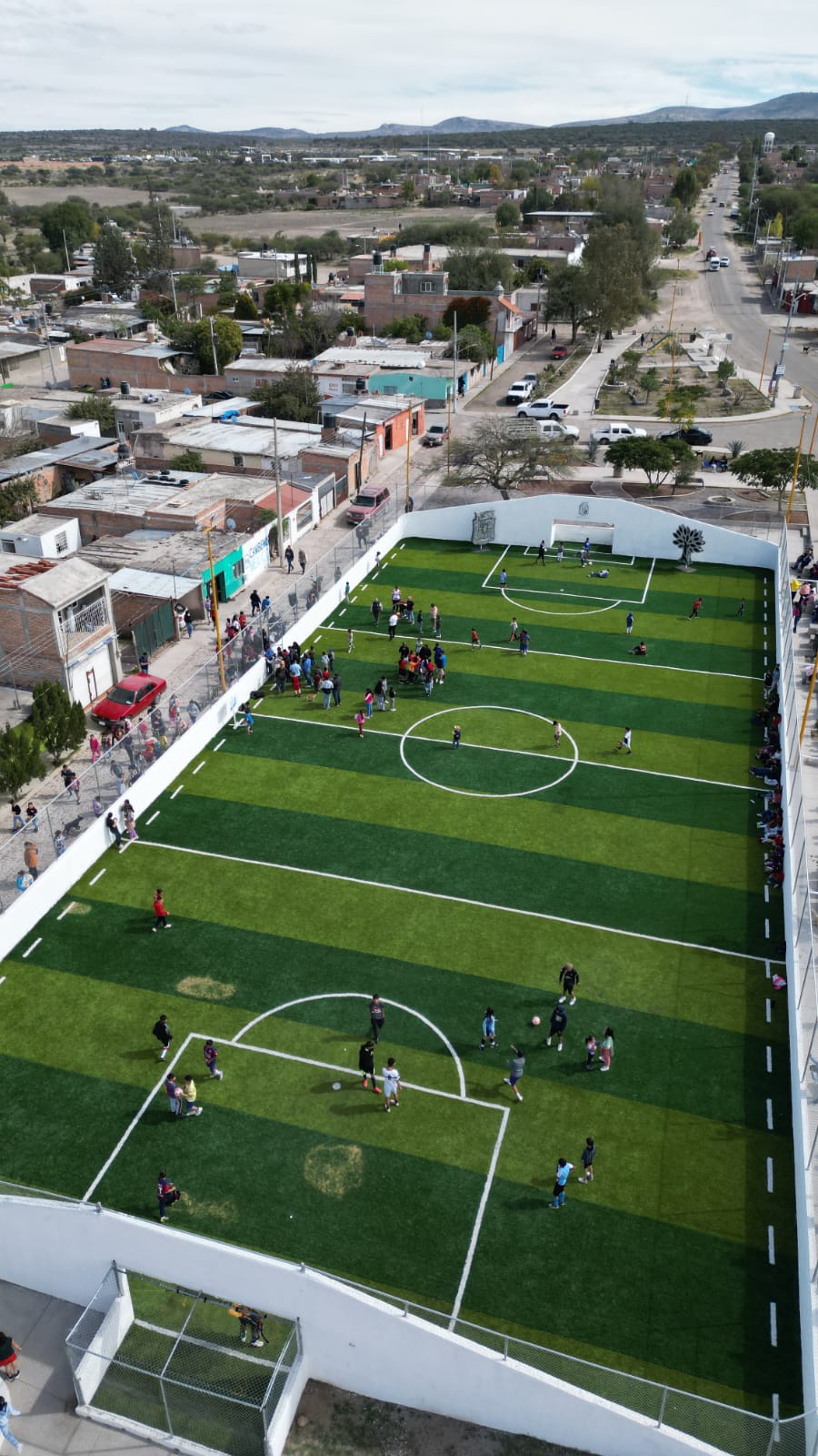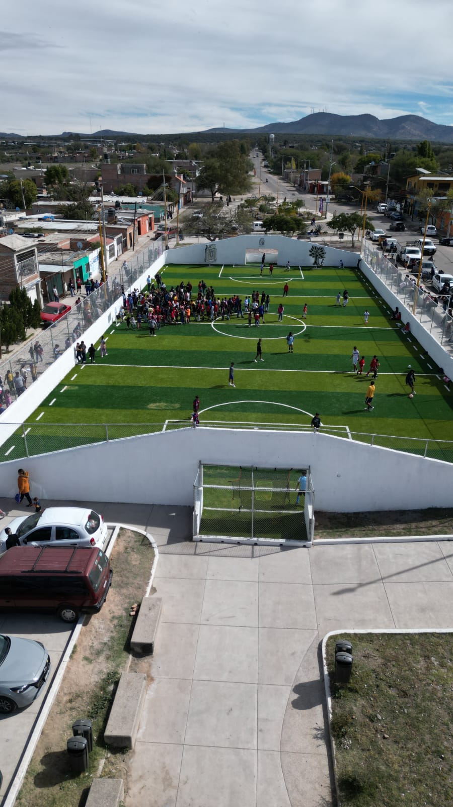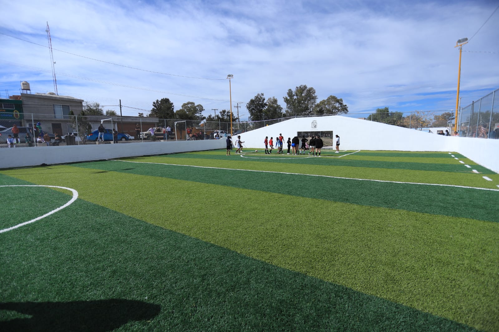 Con una inversión superior a los 2 millones 500 mil pesos, en esta cancha, se realizaron trabajos como relleno, compactación y colado de concreto, colocación de malla ciclónica, instalación de pasto sintético, así como alumbrado público correspondiente para la correcta visibilidad del campo.