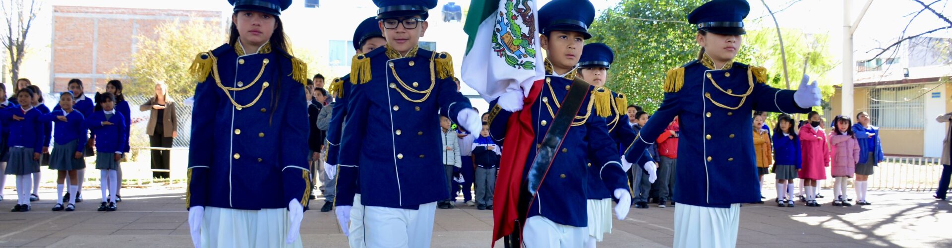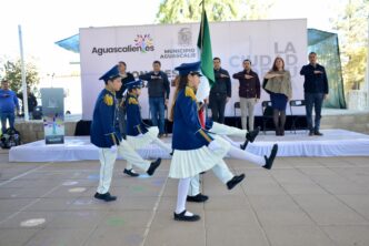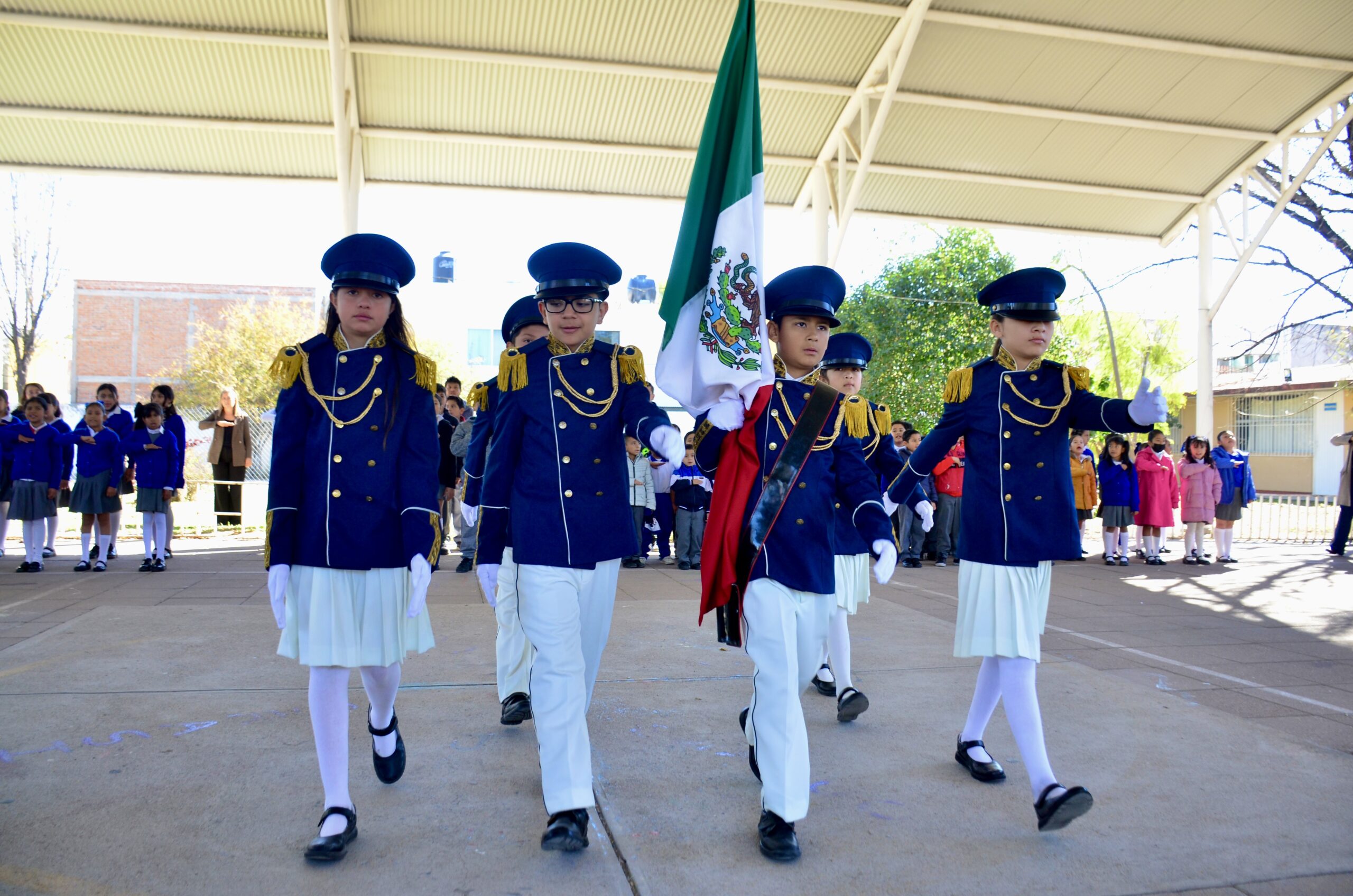 Con el propósito de promover el conocimiento y el respeto a los símbolos patrios y formar ciudadanos que participen activamente en la construcción de un mejor país, el Municipio de Aguascalientes encabezó la ceremonia de honores a la bandera en la escuela «Presidentes de México», en donde reconoció a los tres alumnos más destacados.