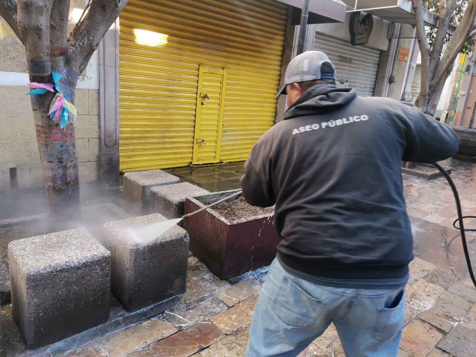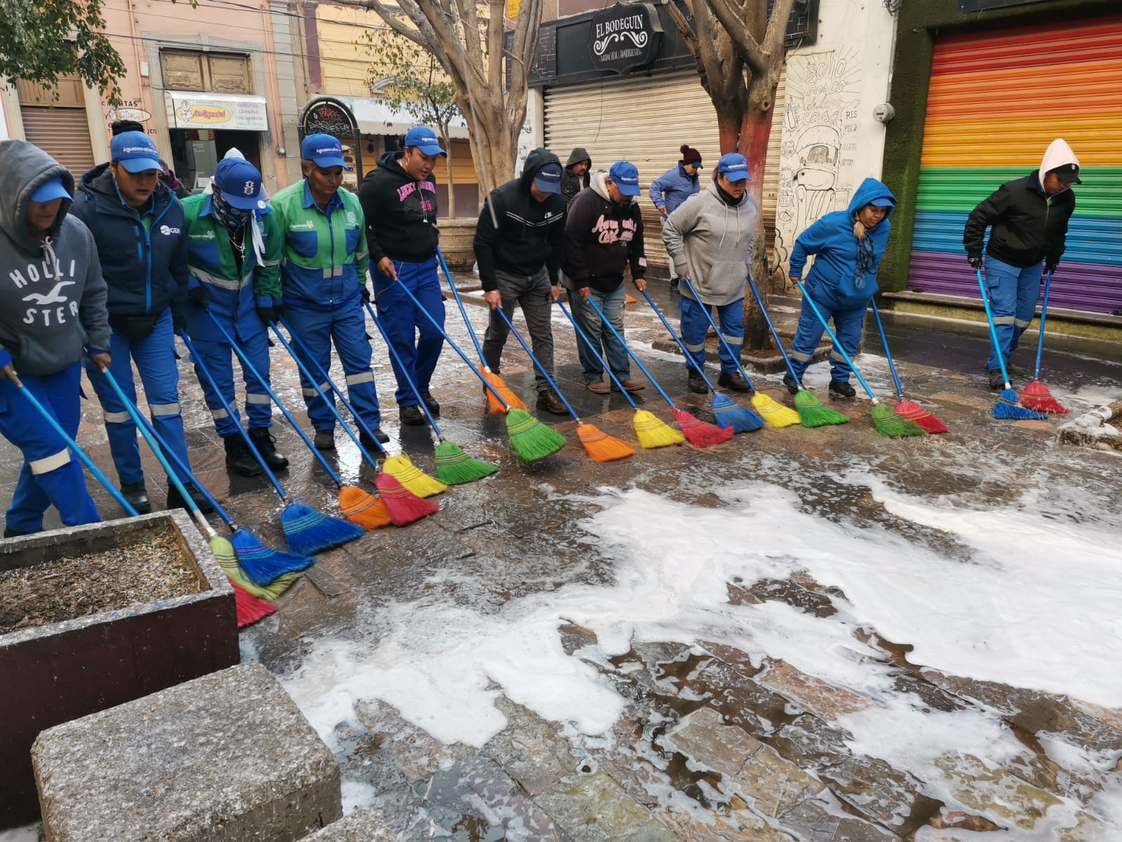 Como parte de los trabajos de mantenimiento de calles, jardines y zonas comerciales, el Municipio de Aguascalientes a través de la Secretaría de Servicios Públicos, llevó a cabo trabajos de limpieza en el andador de la calle Del Codo, ubicada en el centro de la ciudad.