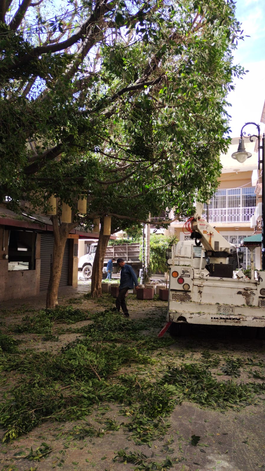 Personal de la Dirección de Parques y Jardines, realizaron podas de altura, lo que permitirá que exista una mayor penetración de luz natural, disminuirá el peso de las copas de los árboles y otorgará una correcta ventilación del área.