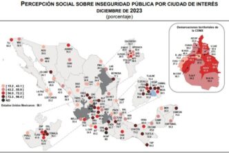 Resultados de este estudio que se publica de manera trimestral muestran de manera positiva que en un comparativo de diciembre 2022 y diciembre 2023 bajó en un 13.3 por ciento la percepción de inseguridad, pasando del 45.3 al 32.0 por ciento.