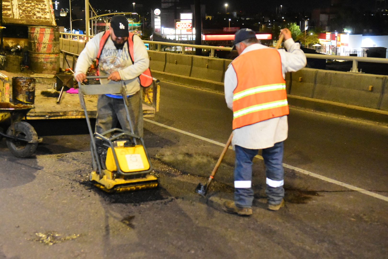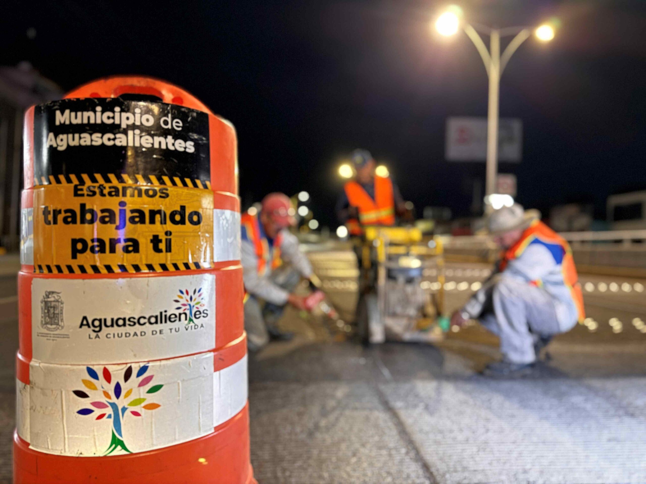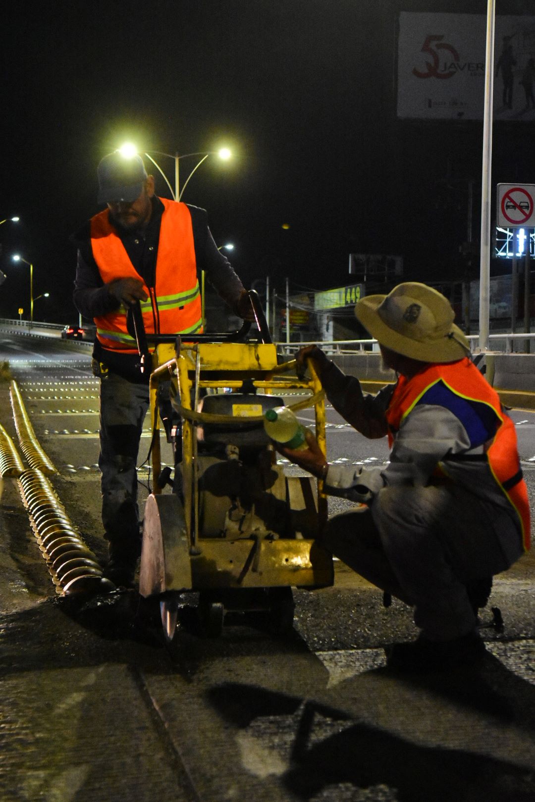 Las cuadrillas de trabajadores de la Secretaría de Obras Públicas del Municipio de Aguascalientes (SOPMA), trabajan de forma estratégica durante las noches en calles y avenidas principales, para no cerrar la circulación a los conductores en horas de mayor tráfico.