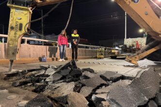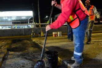 El Municipio de Aguascalientes intensifica los operativos de bacheo nocturno en vialidades de alta afluencia vehicular, como parte de las acciones de rehabilitación y mantenimiento de la infraestructura urbana.