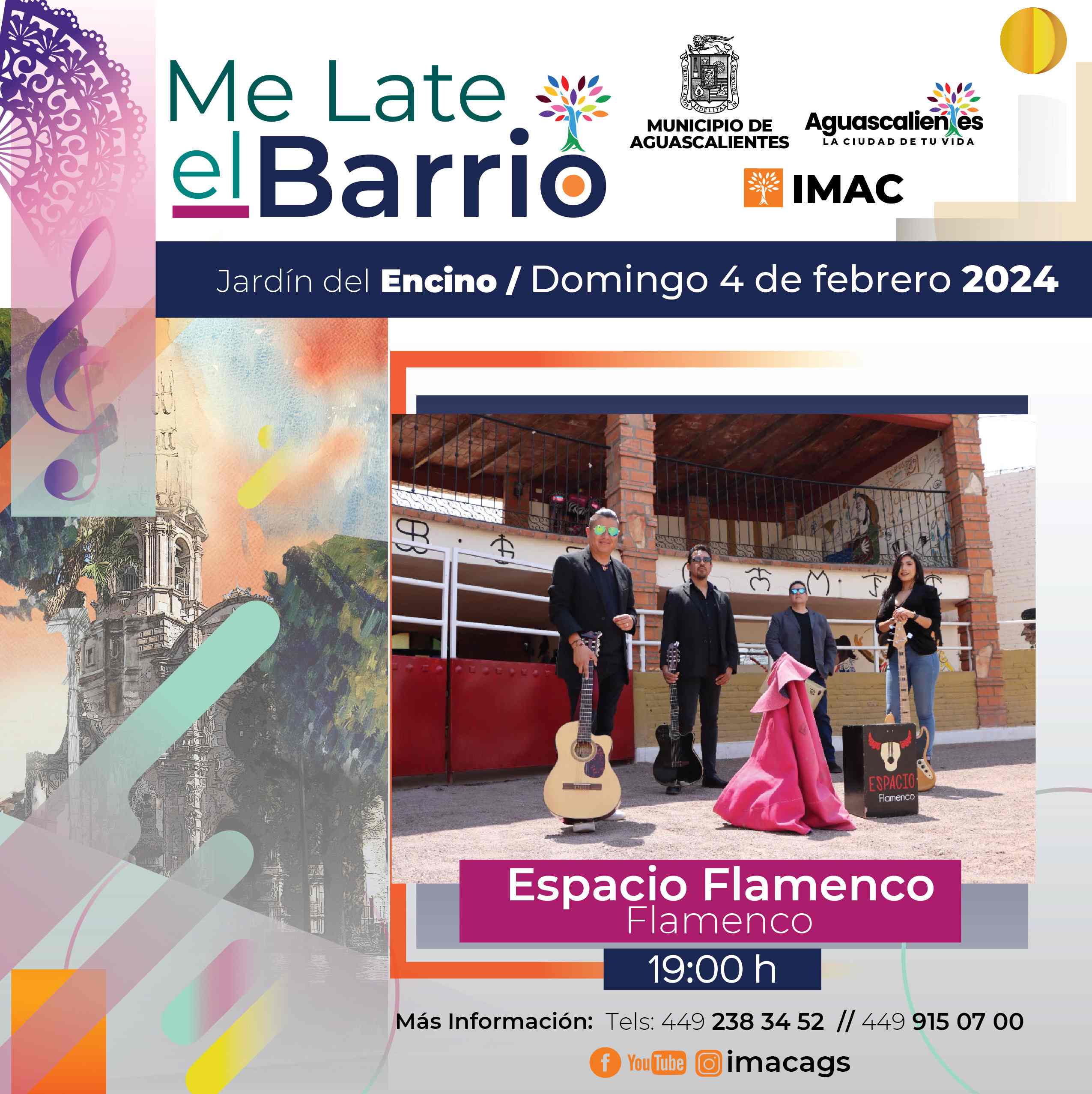 Al Barrio del Encino regresa la música y/o danza flamenca a partir de las 19:00 horas y Expoplaza se pondrá al ritmo de la danza folclórica desde las 18:00 horas.