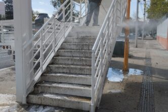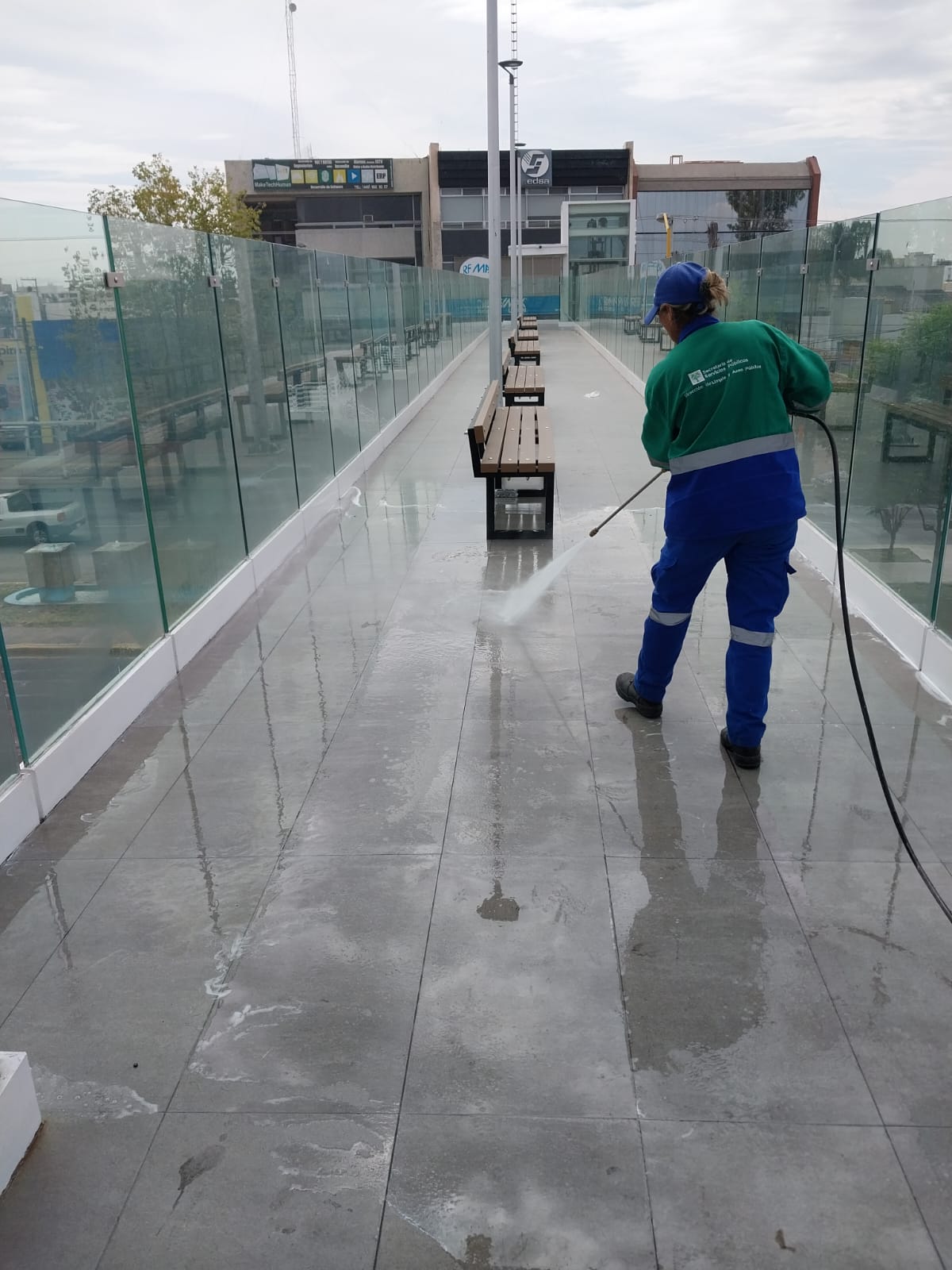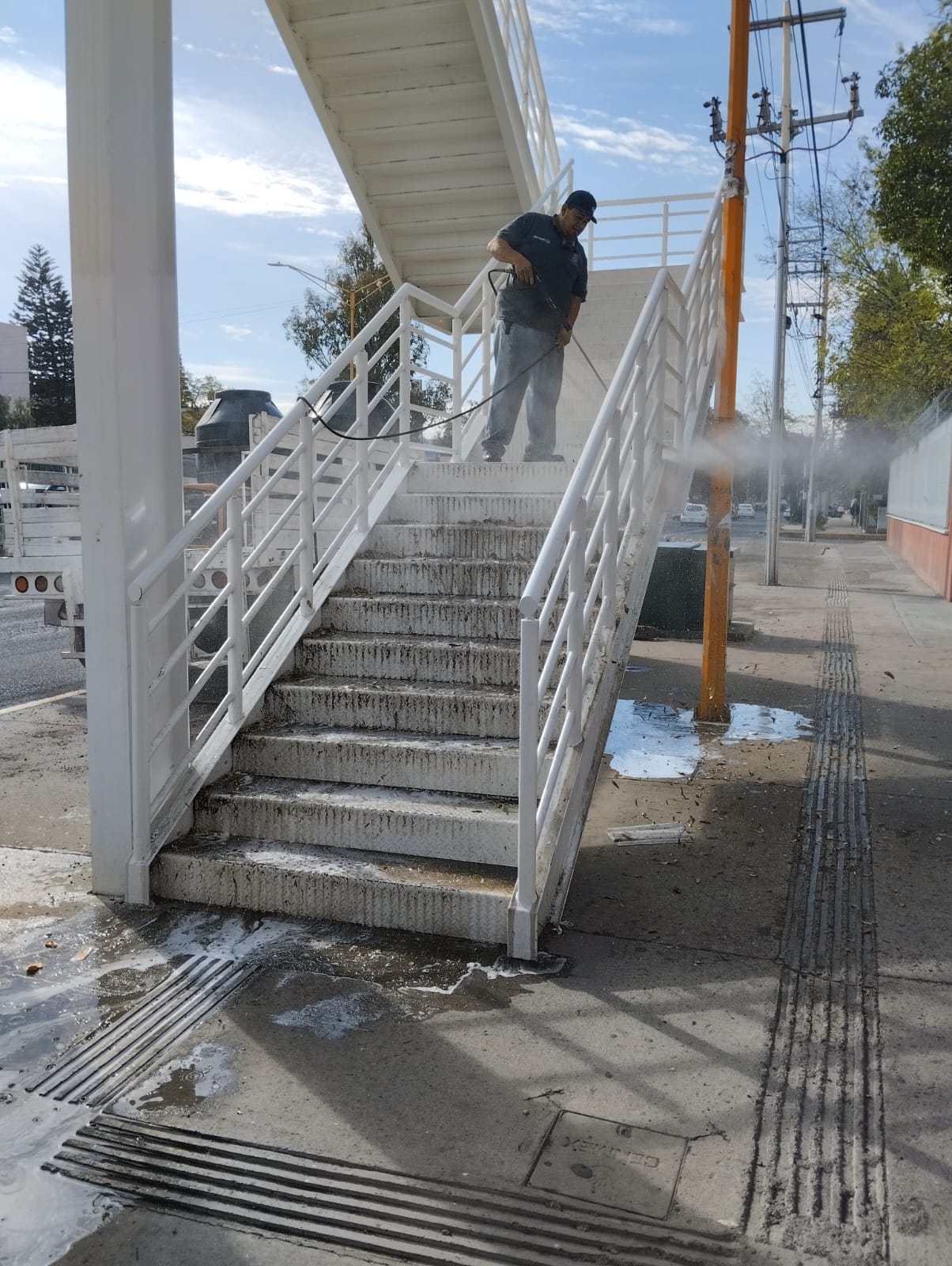 La Secretaría de Servicios Públicos del Municipio de Aguascalientes refuerza las acciones de lavado en puentes peatonales, a fin de mantener esta infraestructura en óptimas condiciones y ofrecerle a la ciudadanía espacios públicos limpios y de calidad.