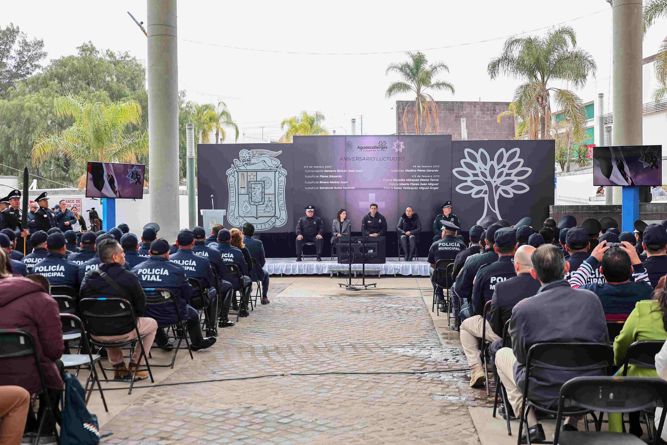 En la Secretaría de Seguridad Pública Municipal de Aguascalientes se rindió un sentido homenaje en memoria de los policías que perdieron la vida en cumplimiento de su deber, así como de aquellos que se conmemora su aniversario luctuoso en febrero.