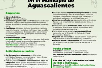 El Municipio de Aguascalientes invita a instructores/as deportivos  de futbol, basquetbol, béisbol, voleibol, zumba, entre otros y a estudiantes de las carreras afines al deporte como Ciencias del Deporte, Cultura Física y Deporte y Educación Física, a participar en el proceso de selección para integrarse al grupo de voluntarios/as como activadores/as y coordinadores/as y participar en la convocatoria Actívate en el Municipio de Aguascalientes.