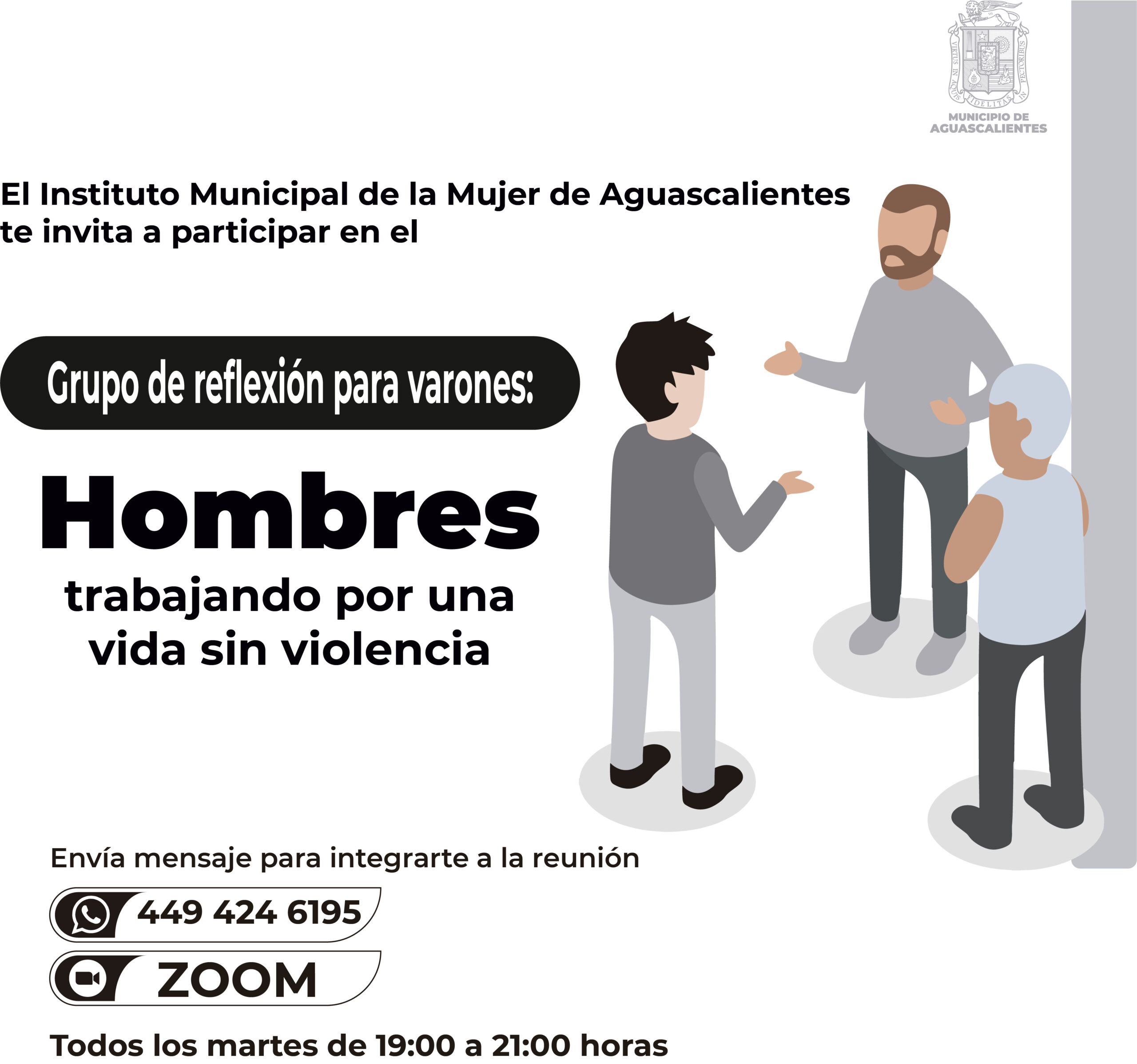 A través del Instituto Municipal de la Mujer de Aguascalientes (IMMA), el Ayuntamiento Capital invita a participar en el grupo de reflexión para varones denominado “Hombres trabajando por una vida libre de violencia «.