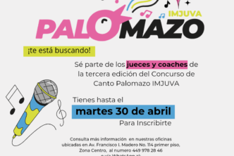 El Instituto Municipal de la Juventud de Aguascalientes (IMJUVA) lanza convocatoria para reclutar coaches y jueces para el próximo concurso de Canto Juvenil «Palomazo IMJUVA 2024», evento de escaparate para talentos emergentes de la música local.