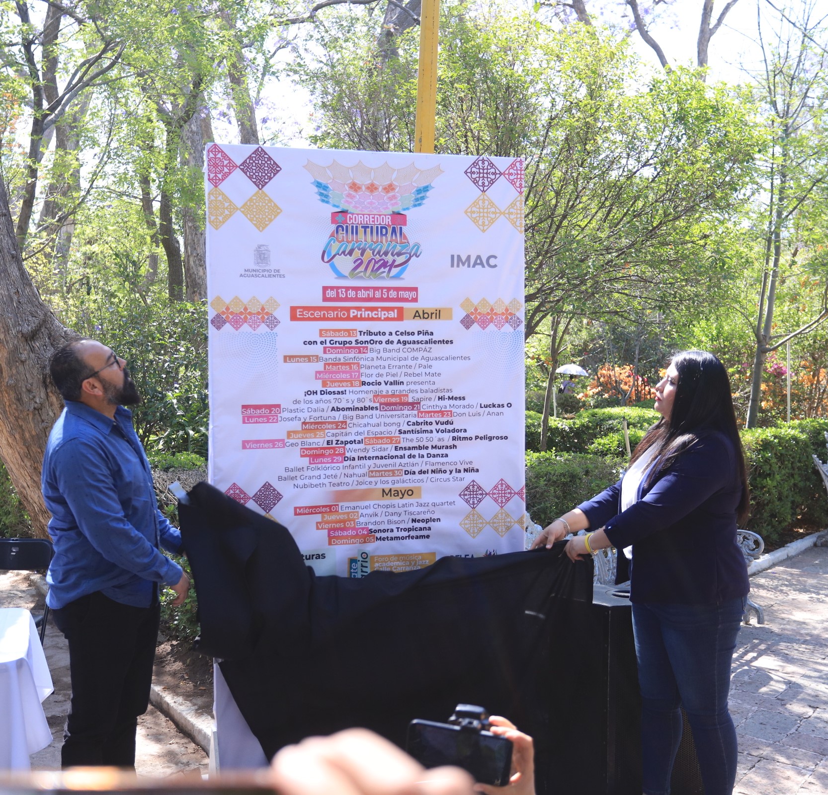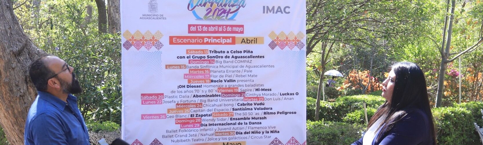 El Instituto Municipal Aguascalentense para la Cultura (IMAC) presentó el programa para el Corredor Cultural Carranza en la Feria Nacional de San Marcos 2024, en donde del 13 de abril al 5 de mayo se llevarán a cabo actividades gratuitas para público de todas las edades, con teatro, danza folclórica, flamenco, música regional, trova, canto latinoamericano, bohemia, pop, rock, son jarocho, además de circo, malabares, marionetas, cuenta cuentos y mucho más.