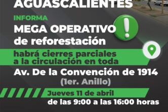 La Secretaría de Servicios Públicos del Municipio de Aguascalientes (SPP) llama a la ciudadanía, especialmente a los automovilistas a tomar las debidas precauciones debido a que este jueves 11 de abril se llevará a cabo una jornada de reforestación en el camellón central de la avenida de la Convención de 1914, en donde habrá cierres parciales a la circulación.