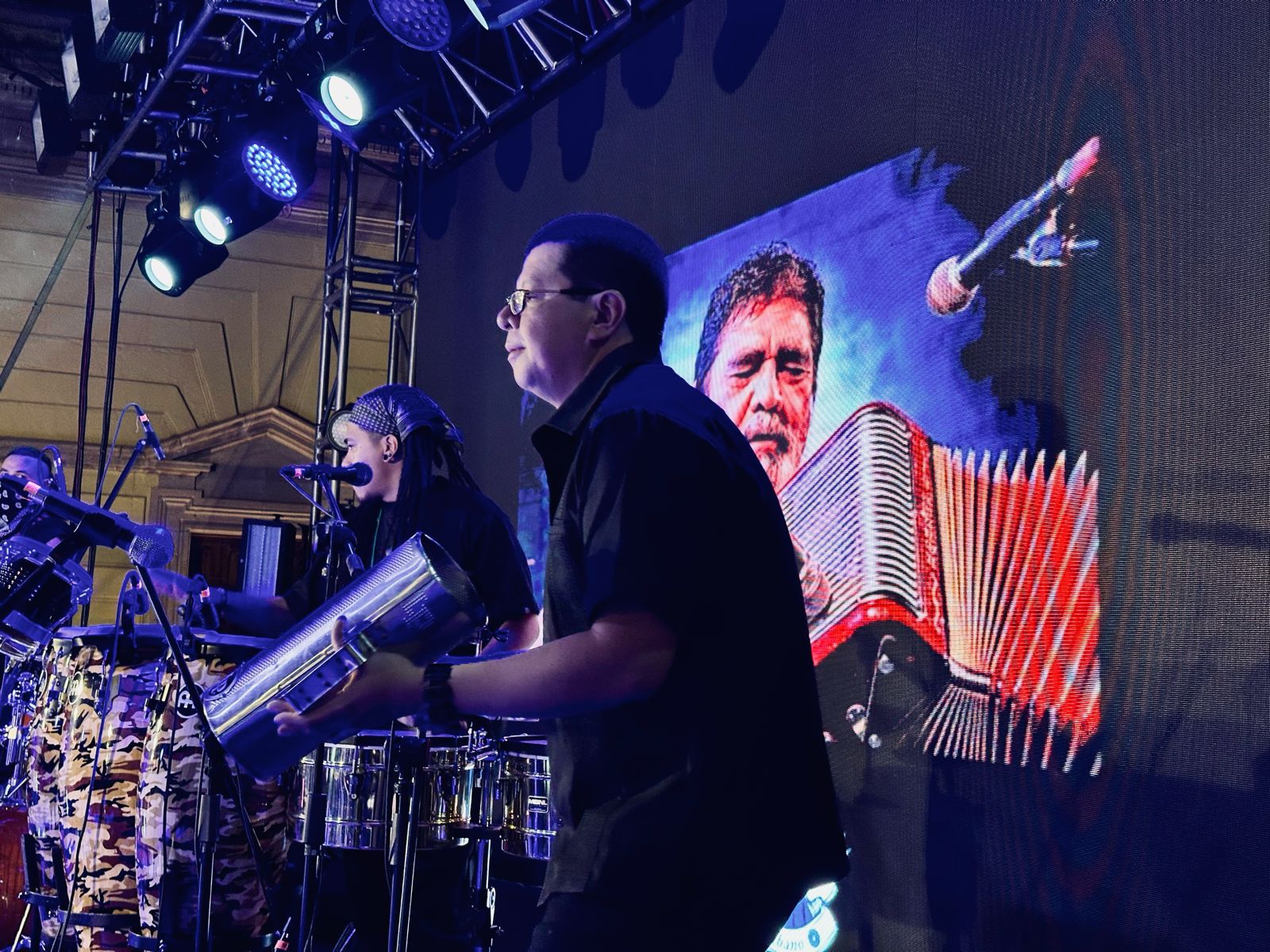 - En el primer concierto deleitaron al público recreando los temas más representativos del «Rebelde del Acordeón»