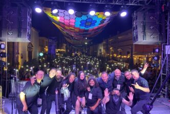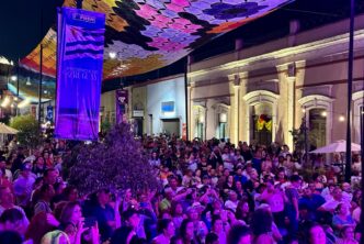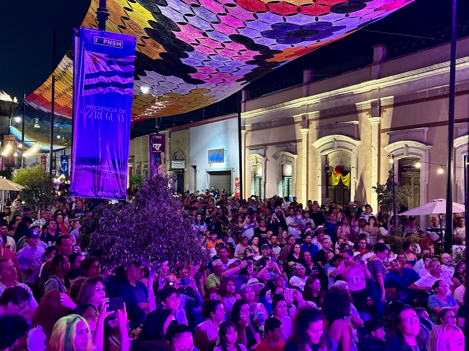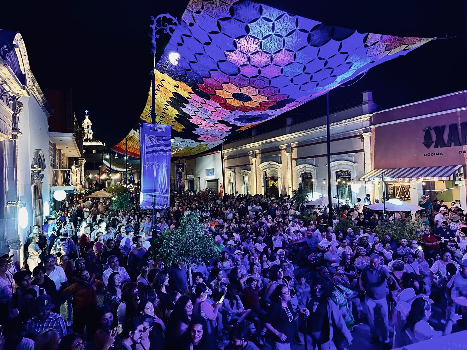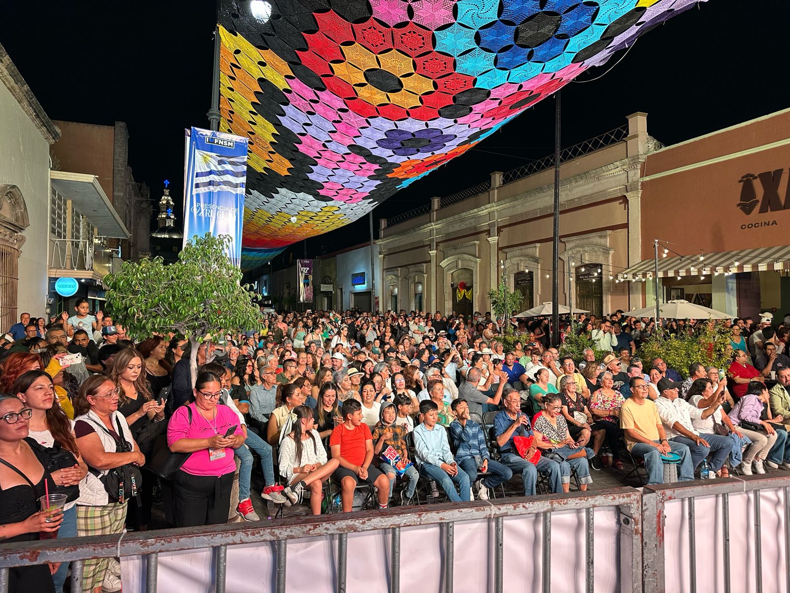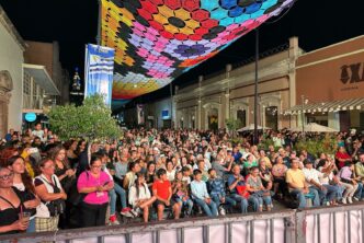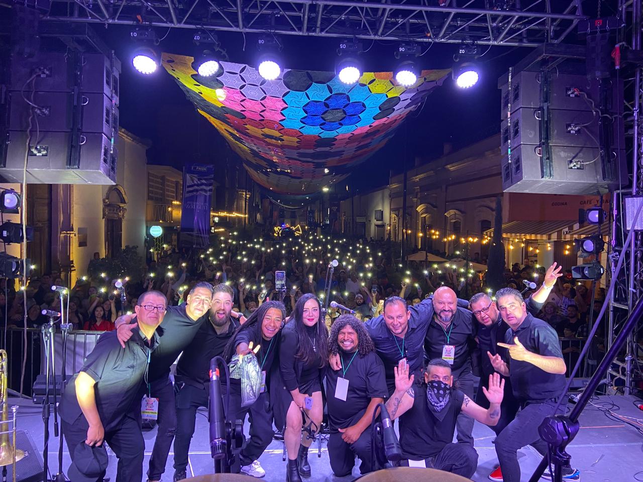 De forma espectacular deleitaron al público en este arranque de verbena y pusieron a bailar a chicos y grandes con una combinación de notas del icónico acordeón de Celso Piña, bajo la decoración del «Cielo Tejido» instalada este año en este andador.