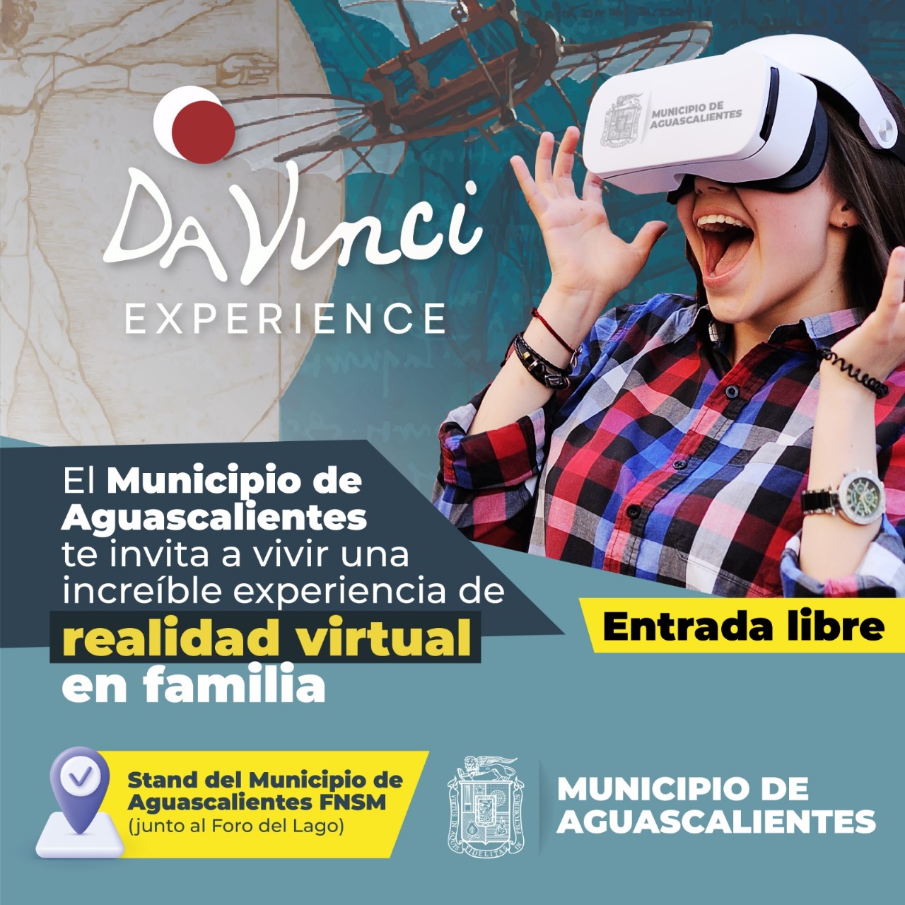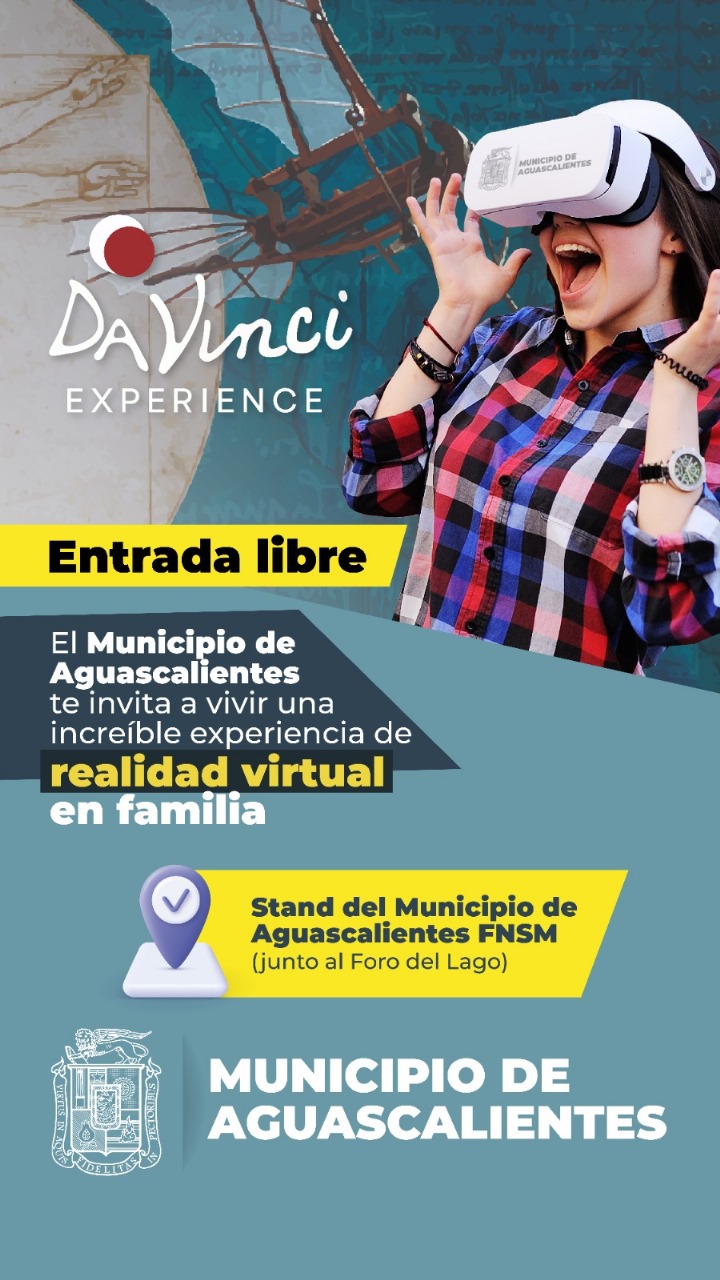 Además, el Municipio de Aguascalientes invita a vivir la inolvidable experiencia Da Vinci virtual en la Feria Nacional de San Marcos.