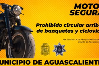 La Secretaría de Seguridad Pública Municipal de Aguascalientes (SSPM) recuerda a los conductores de motocicletas que está prohibido circular en aceras, ciclovías y áreas reservadas para peatones, como lo establece la Ley de Movilidad del Estado de Aguascalientes.