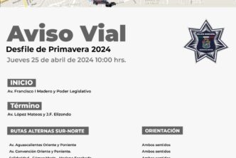 El Municipio de Aguascalientes anunció el cierre de diversas calles de la zona Centro el próximo jueves 25 de abril, debido al desarrollo del Desfile de Primavera.