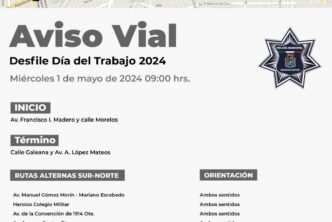 - Se llevará a cabo por el desfile cívico-obrero del Día del Trabajo, a realizarse en la zona centro