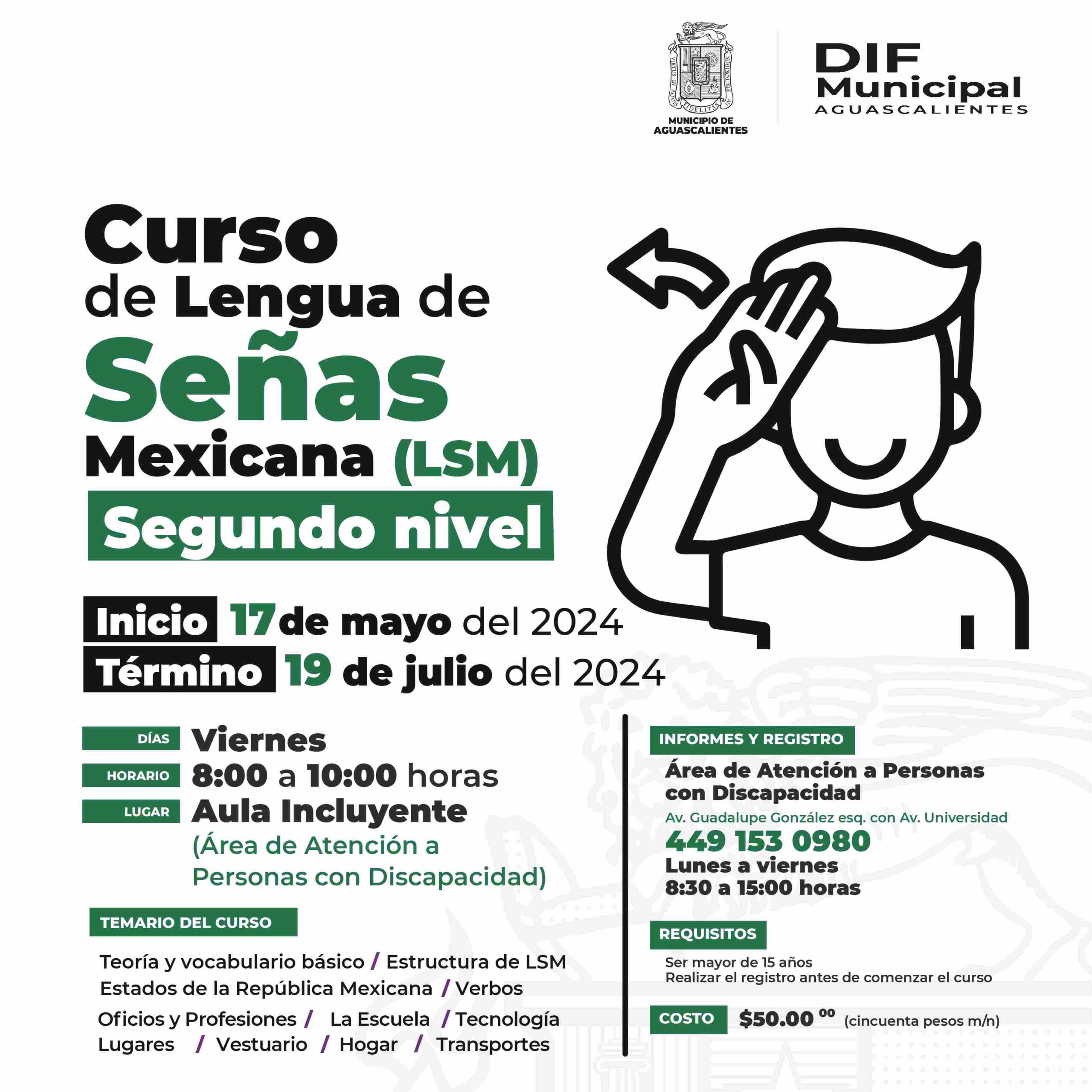 Con el objetivo de promover la inclusión de las personas con discapacidad, el DIF Municipal de Aguascalientes inicia dos nuevos cursos de Lengua de Señas Mexicana, el primero a nivel básico inicial y el segundo a nivel avanzado.