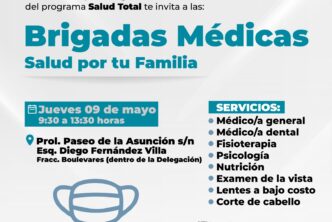 El DIF Municipal, invita a la ciudadanía a las Brigadas Médicas “Salud por tu Familia”, que se llevan a cabo en diferentes colonias, fraccionamientos y comunidades.