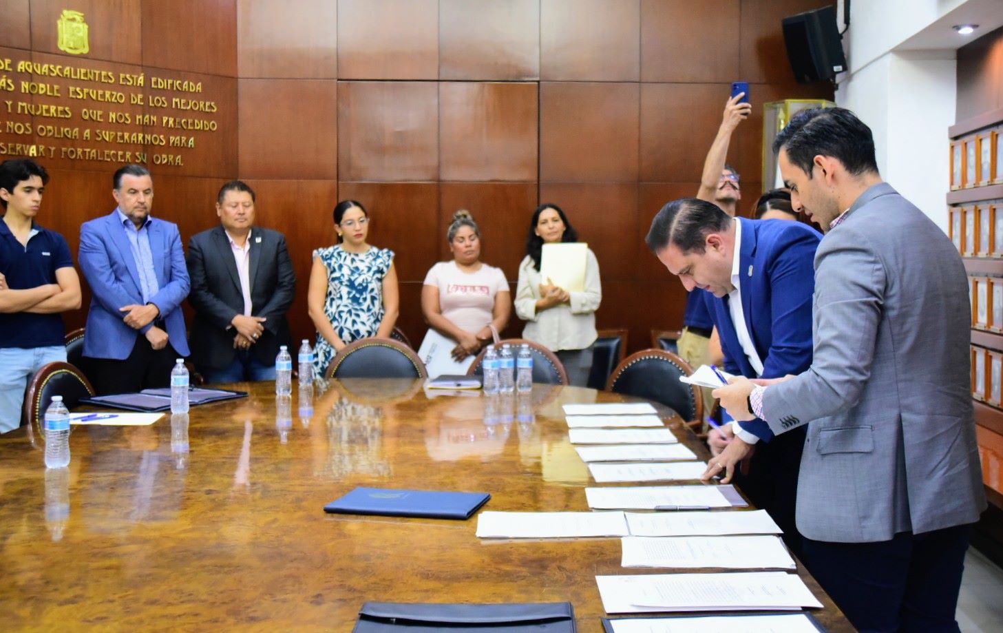 El presidente municipal de Aguascalientes, José Juan Sánchez Barba, encabezó, este viernes, la vigésima quinta firma de escrituras con Notarías Públicas, mediante las cuales se formaliza la adquisición de bienes inmuebles en diversos puntos de la ciudad y en los que se realizarán obras y servicios a favor de la población.